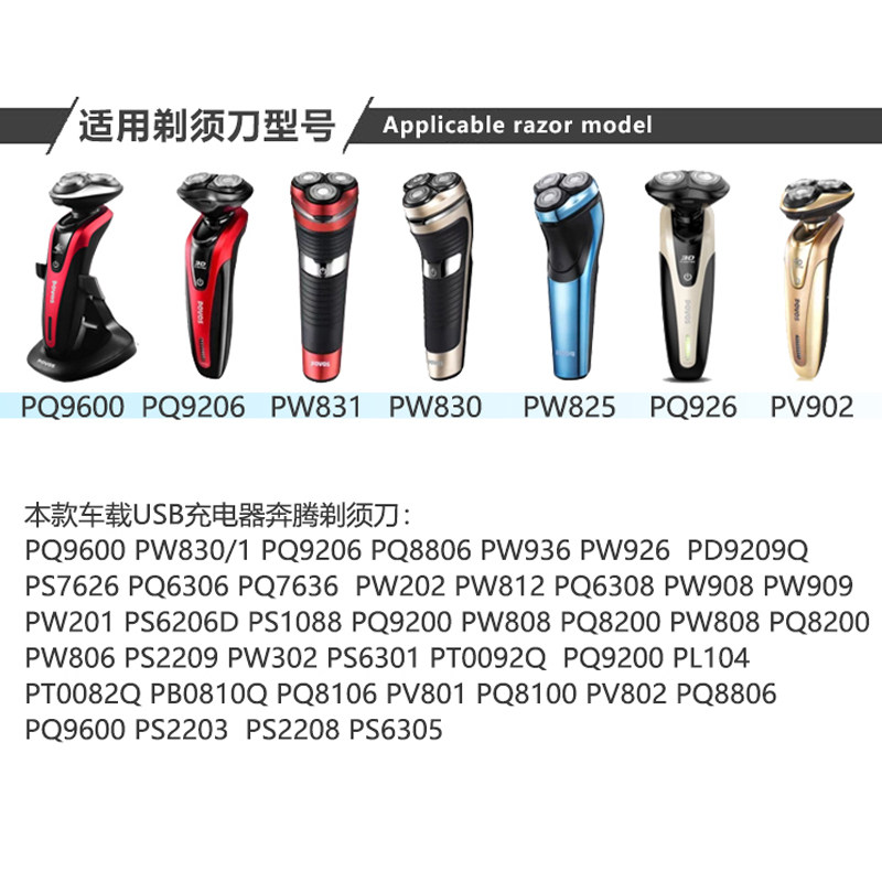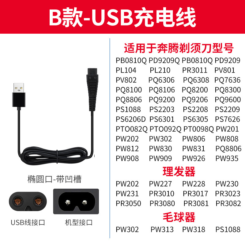 Povos/奔腾剃须刀充电器PW830/926/936 PQ9600/9206配件USB电源线