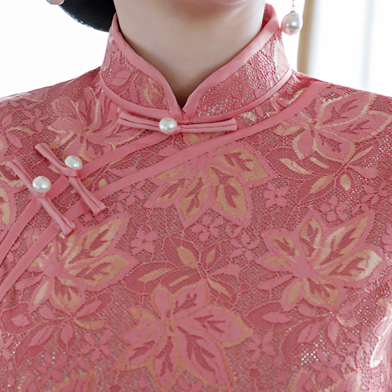 喜婆婆婚宴走秀年轻款粉色旗袍