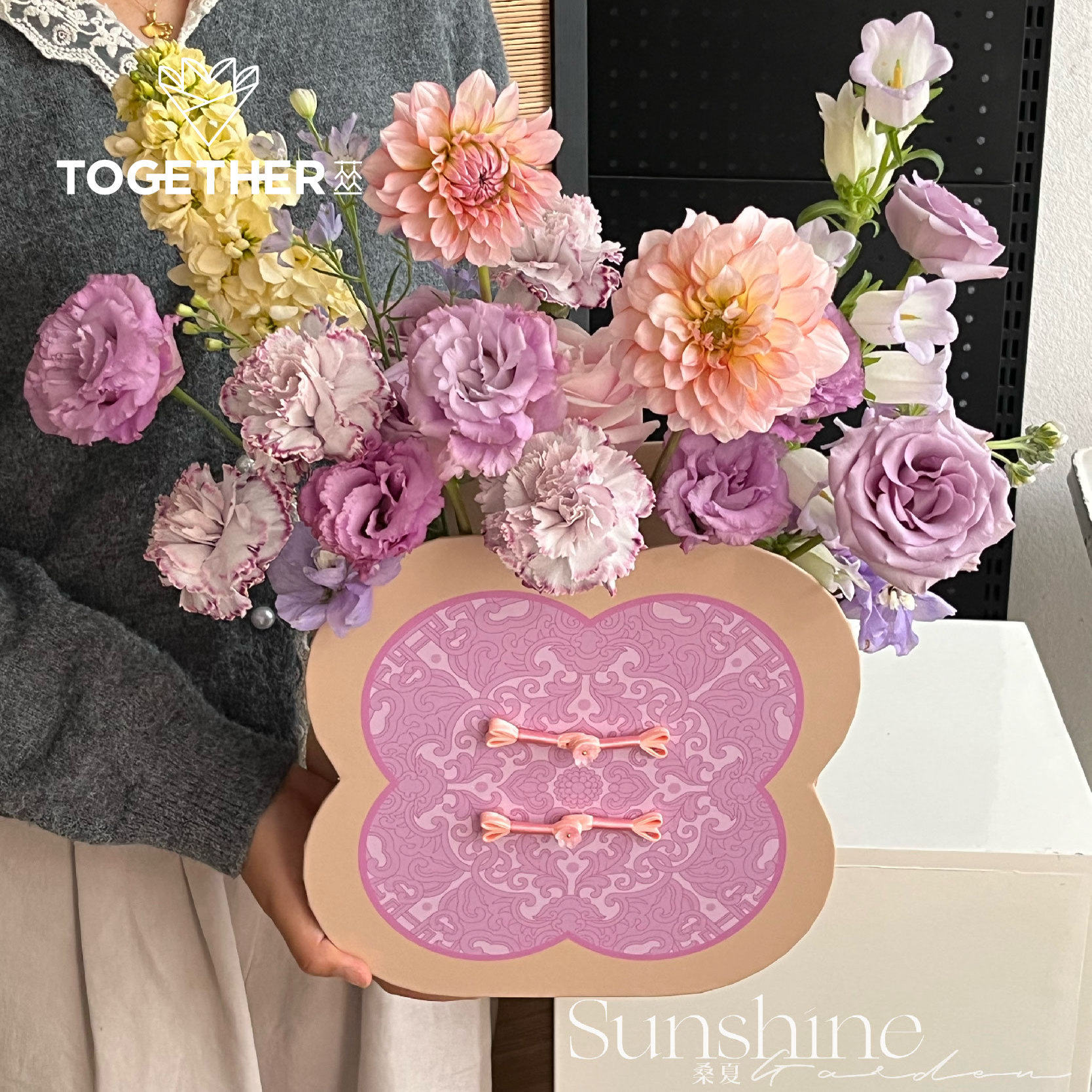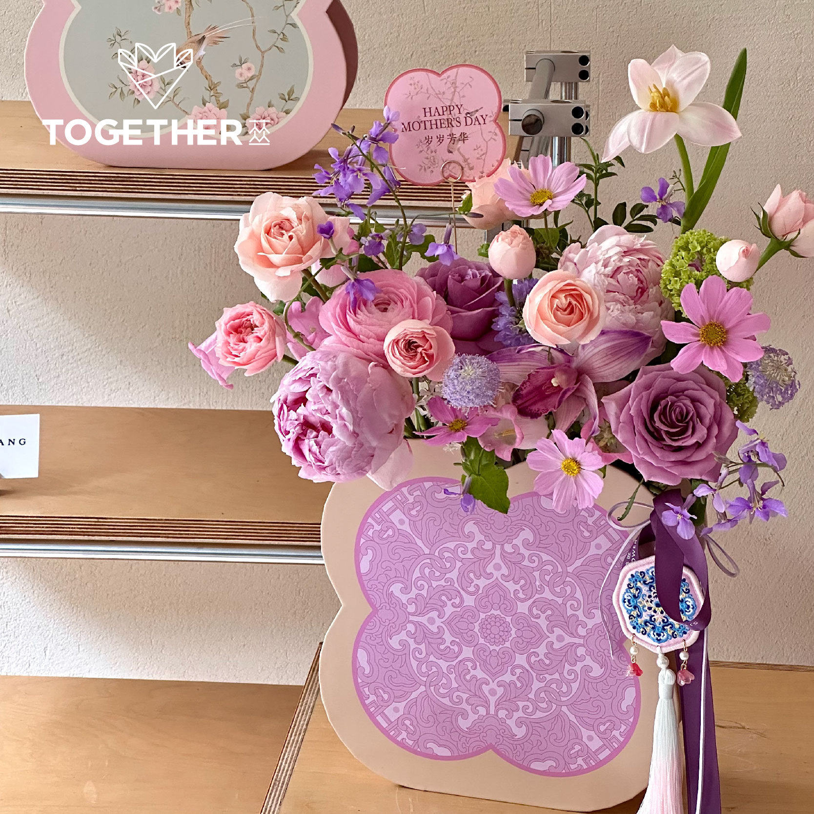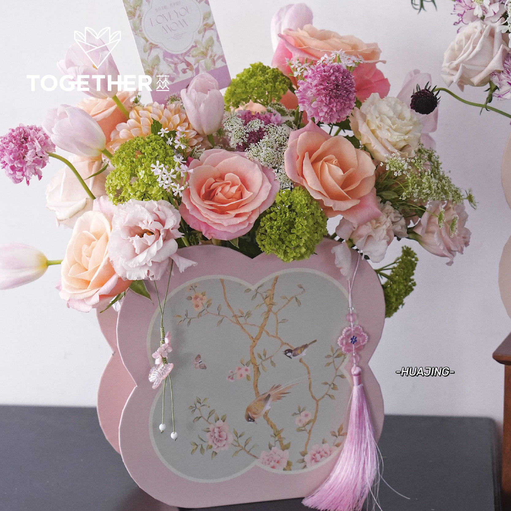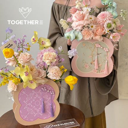 【8折特价】苁丛 原创 女神节温柔中式四叶草2d花盒 鲜花插花礼盒