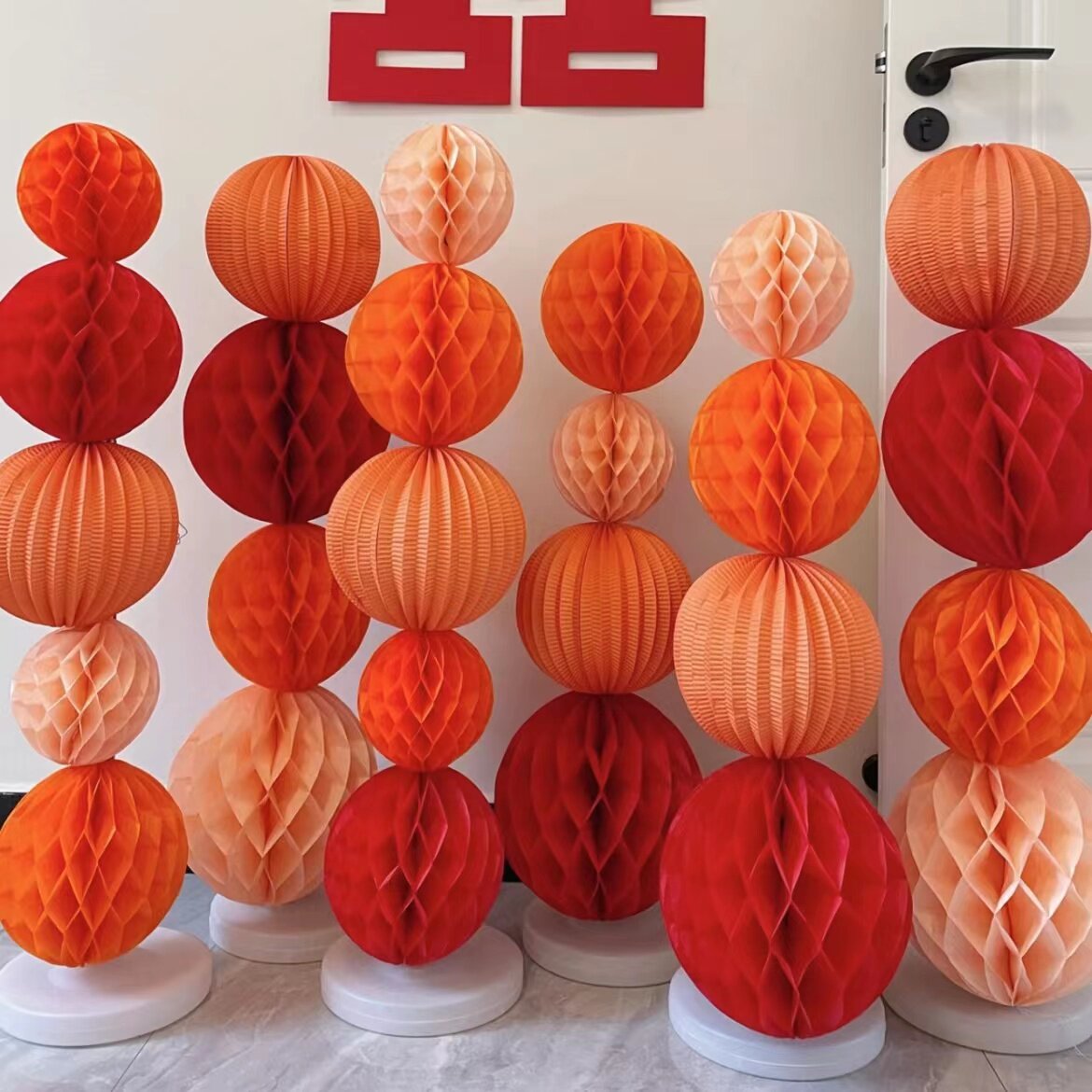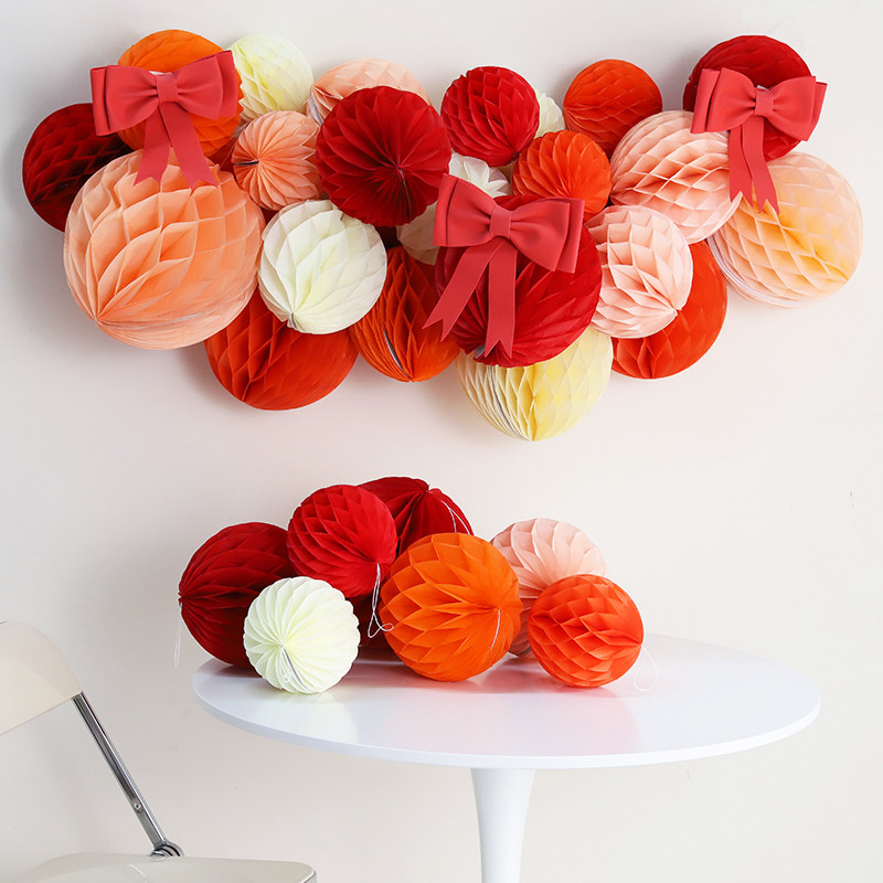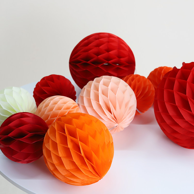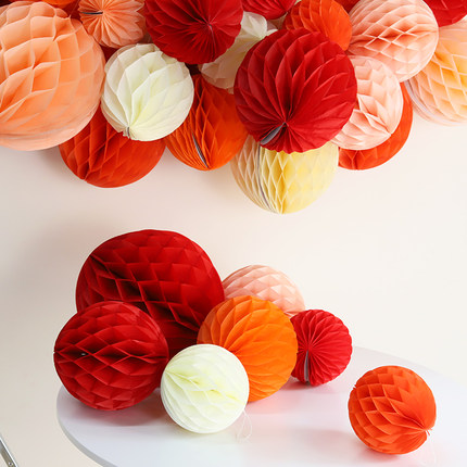 蜂窝球装饰纸灯笼春节挂饰马年挂件店铺生日周岁过年场景布置