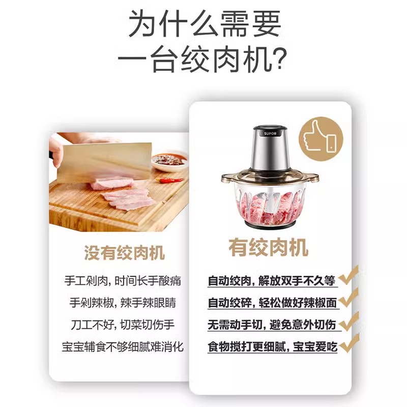 苏泊尔电动绞肉机JRD01家用小型搅拌机多功能碎肉机绞菜机搅碎机