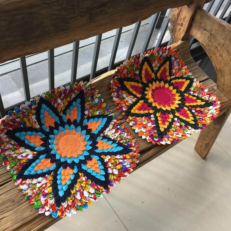泰国手工拼布方形坐垫家居布艺藤椅垫沙发垫民族风莲花立体汽车垫