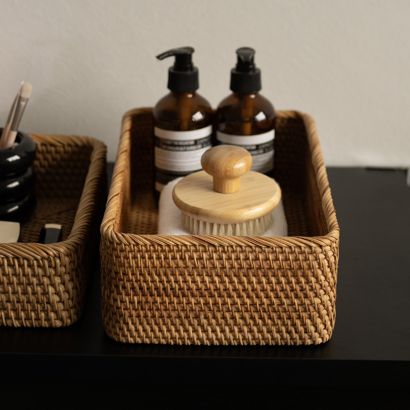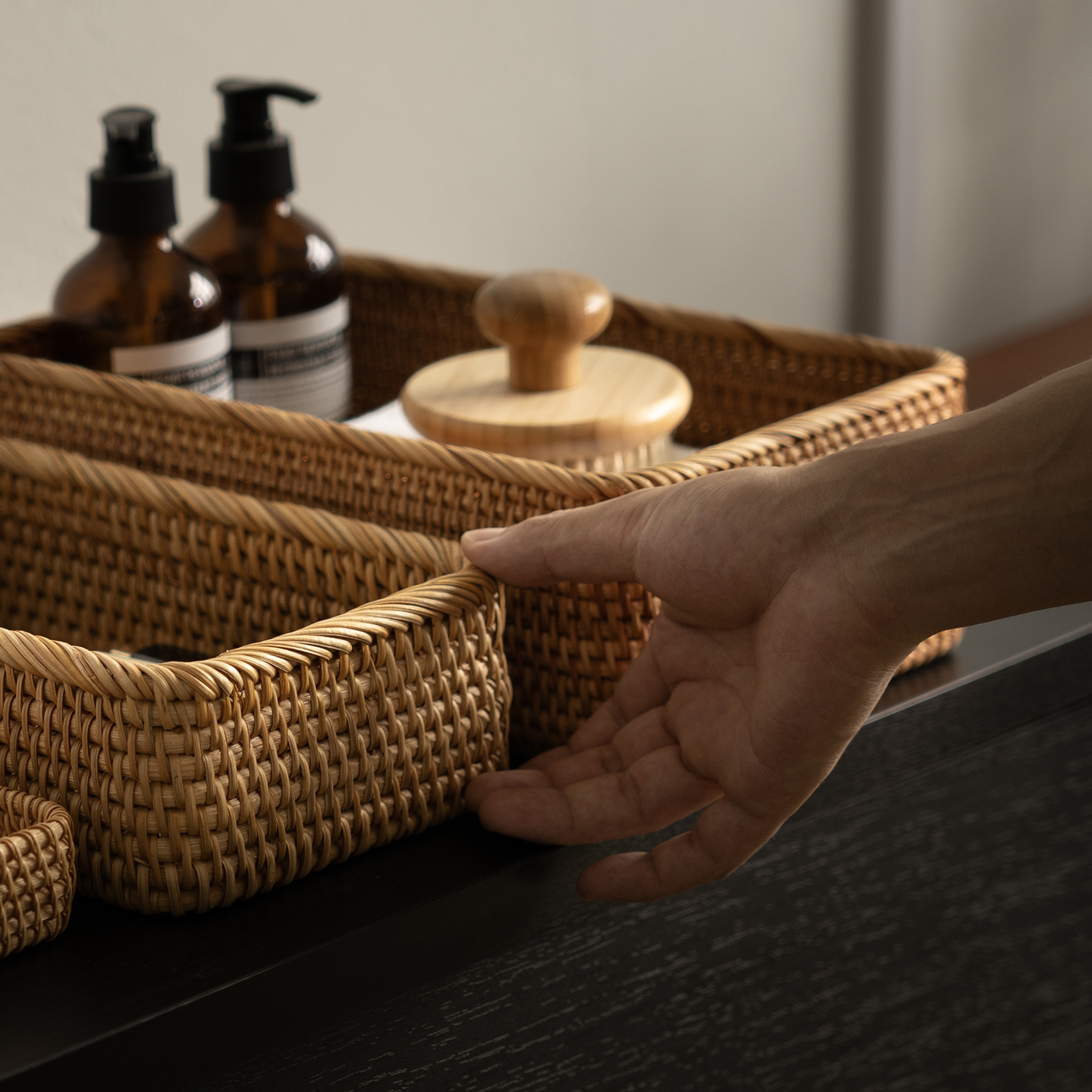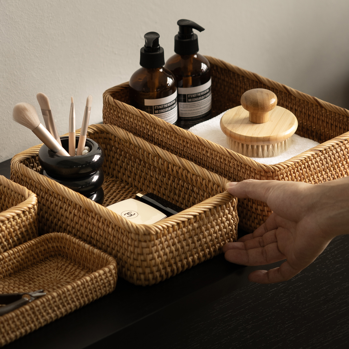 shy pear羞梨 藤编收纳筐 手工编织梳妆桌面收纳盒化妆品整理篮子