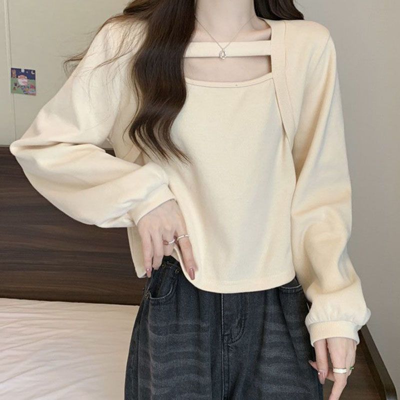 大码女装德绒打底衫秋冬款胖mm遮腹显瘦减龄女士洋气内搭方领上衣