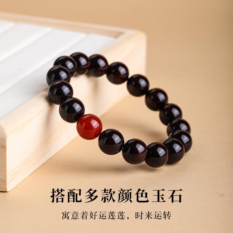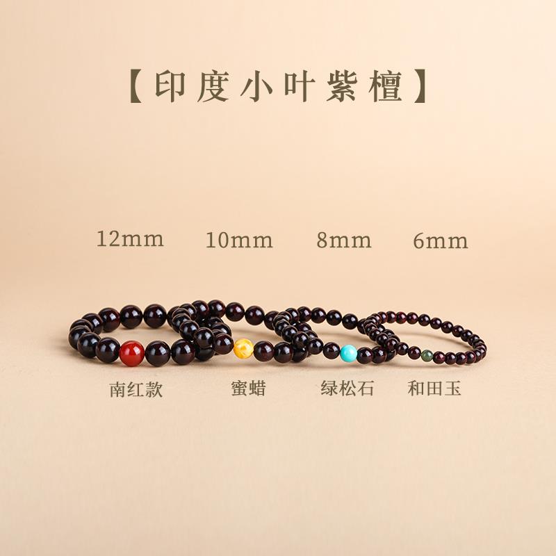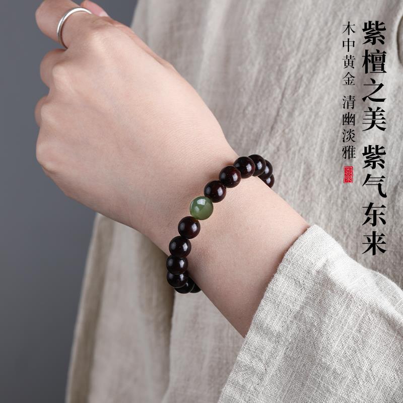 正宗老料小叶紫檀手串木质檀香佛珠守护本命年女单圈手链情侣礼物