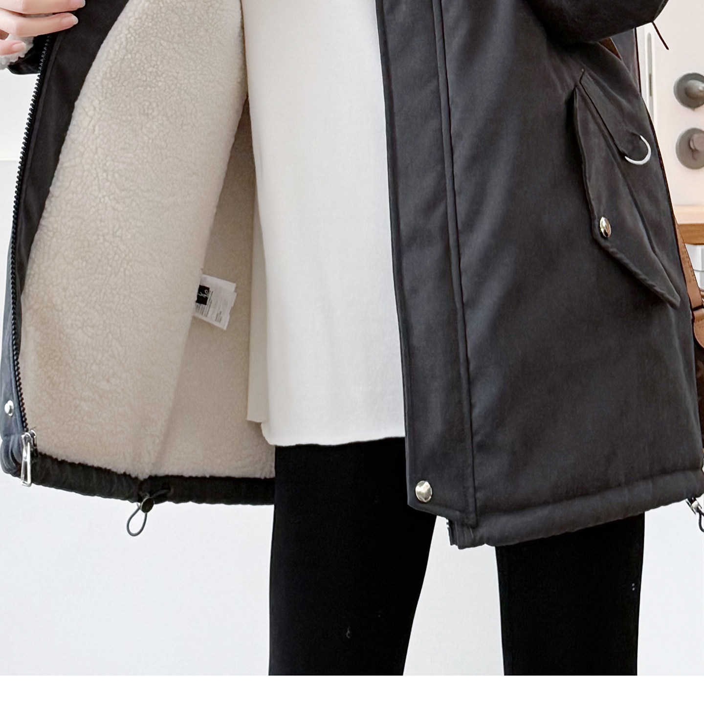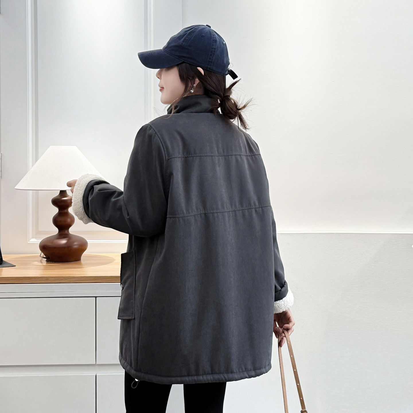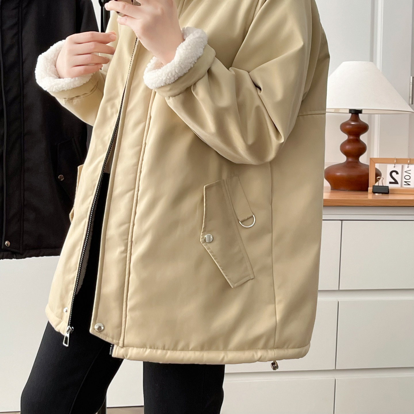 加绒棉衣女中长款大码2025年秋冬新款胖mm200斤立领宽松棉服外套