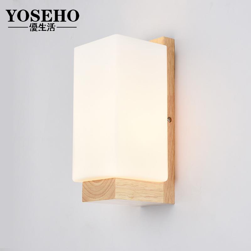 北欧壁灯日式简约走廊床头灯过道原木色转角灯中式现代实木入户灯