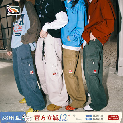 lemanism美式复古水洗工装裤男款裤子卡其色春秋季直筒休闲长裤女
