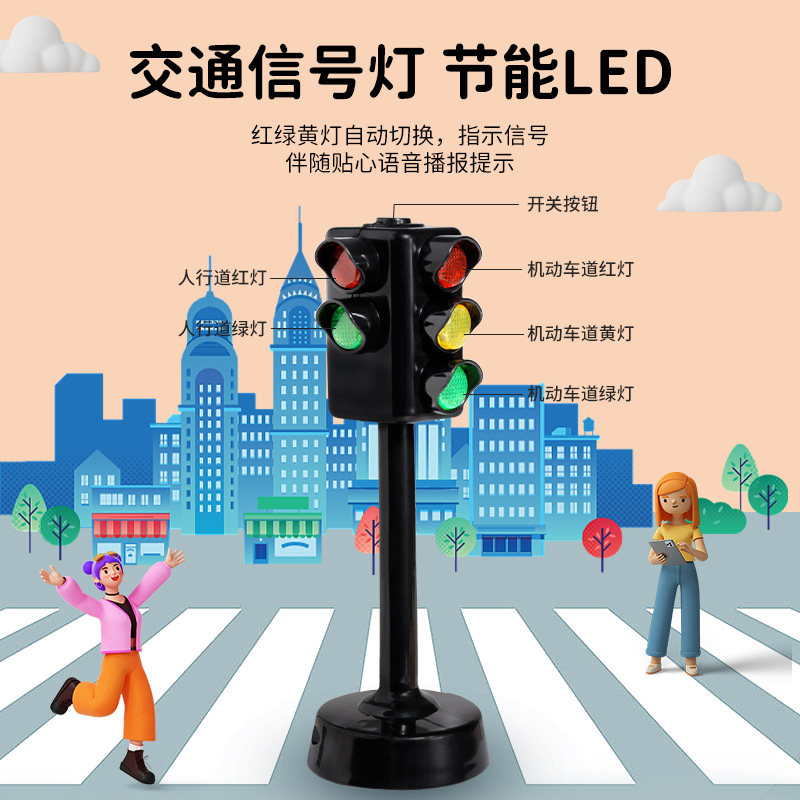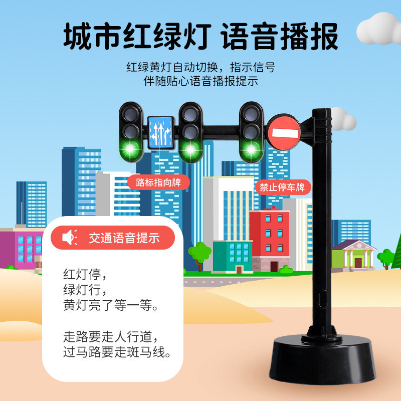 十字路口斑马线红绿灯声光语音播报交通信号指示灯儿童早教玩具