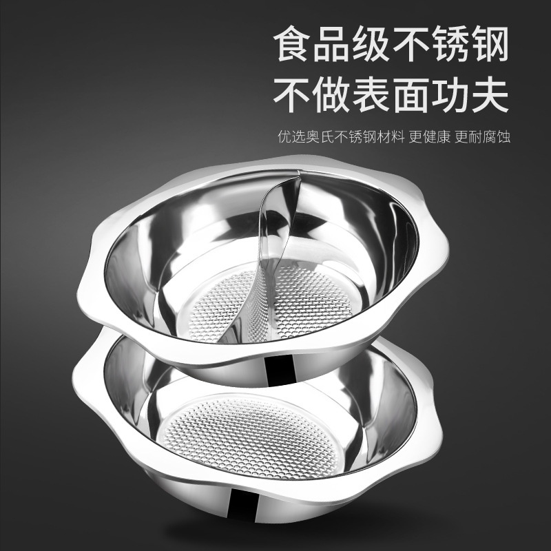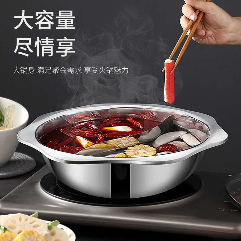 不锈钢鸳鸯锅火锅大容量锅家用电磁炉火锅盆加厚清汤涮串锅