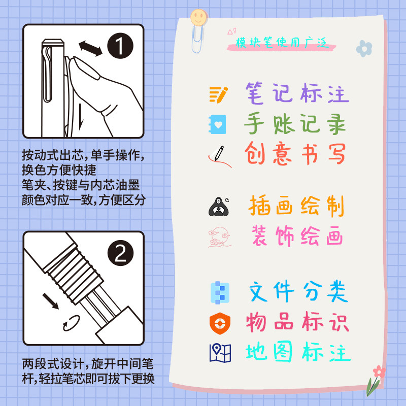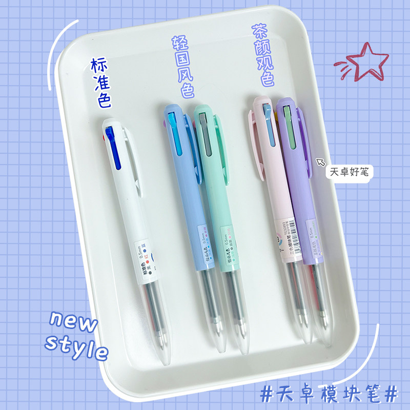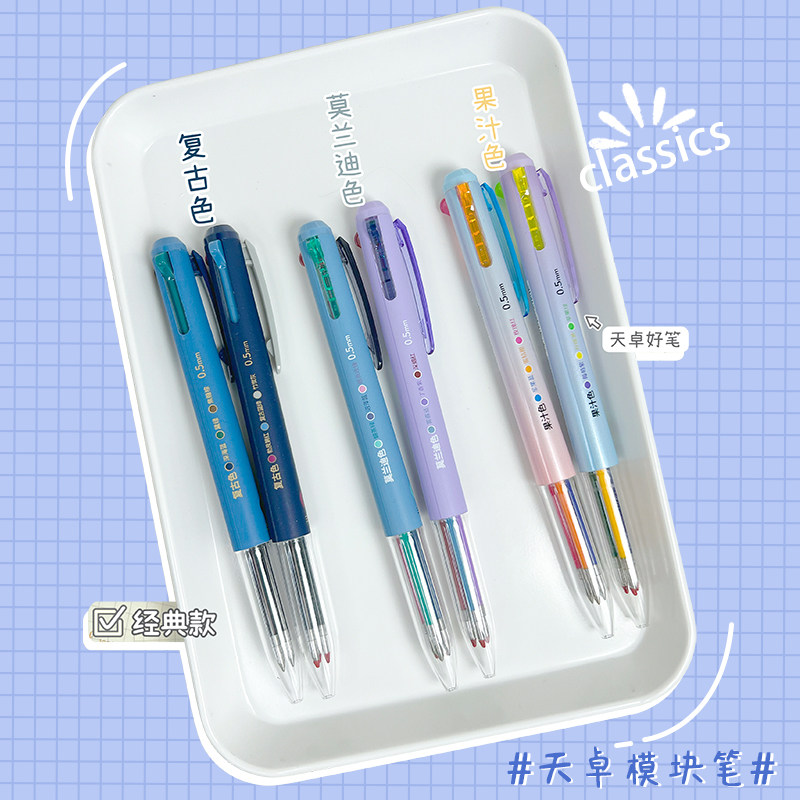 天卓模块笔简约多色中性笔彩色记号笔0.5子弹头学生用作笔记文具手账可换芯学生做尼基专用多色三合一按动笔