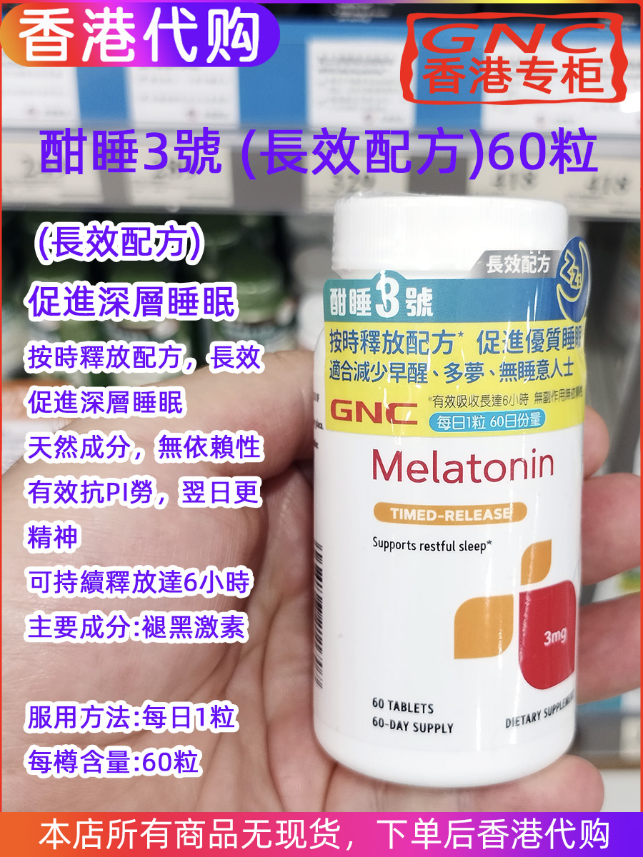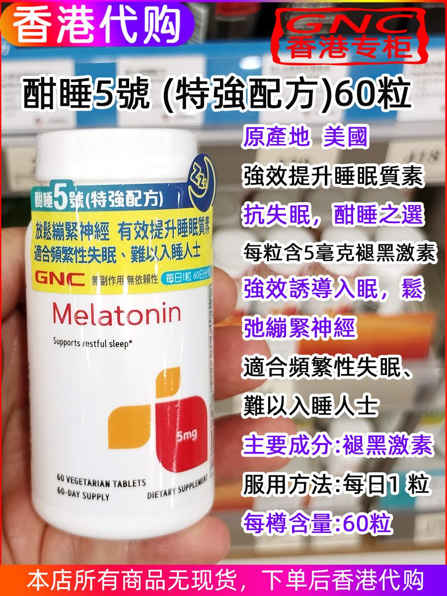 香港代购GNC酣睡melatonin褪黑素褪黑素片60片安心睡助睡眠安眠