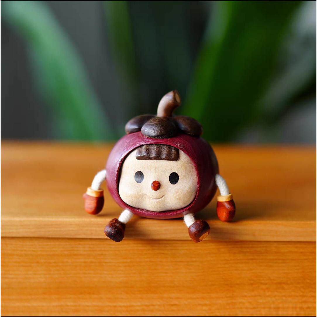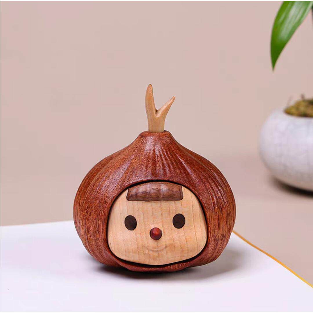 实木雕刻蒜头妹山竹多妹创意家居办公桌面车载摆件装饰品日常礼物