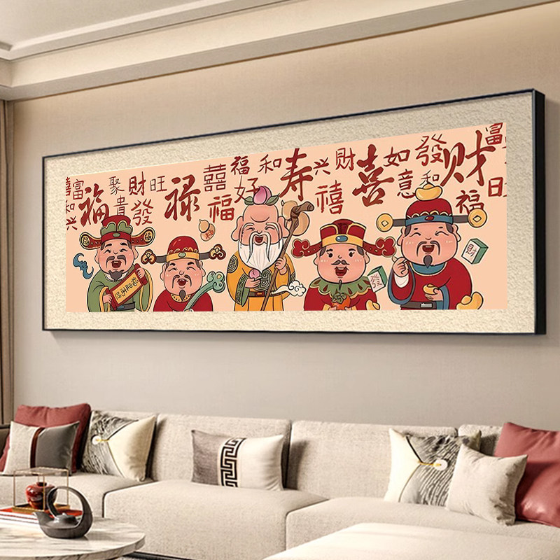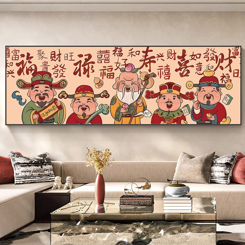 五路财神爷福禄寿喜粘钻石画2025新款财客厅十字绣满钻点钻画
