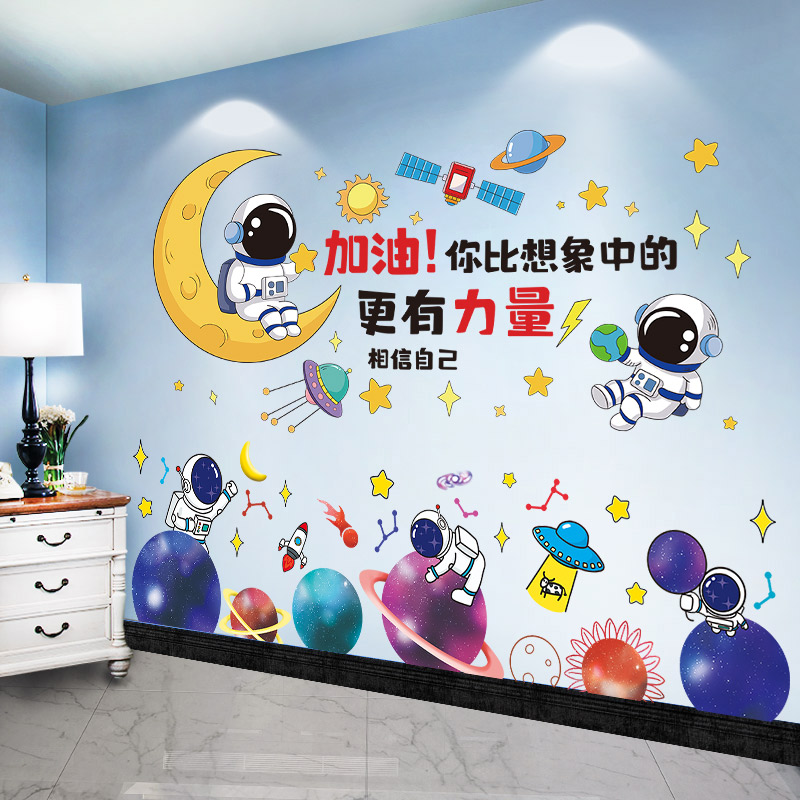 儿童房装饰画男孩女孩卧室房间墙贴宇航员创意卡通V壁纸客厅床贴