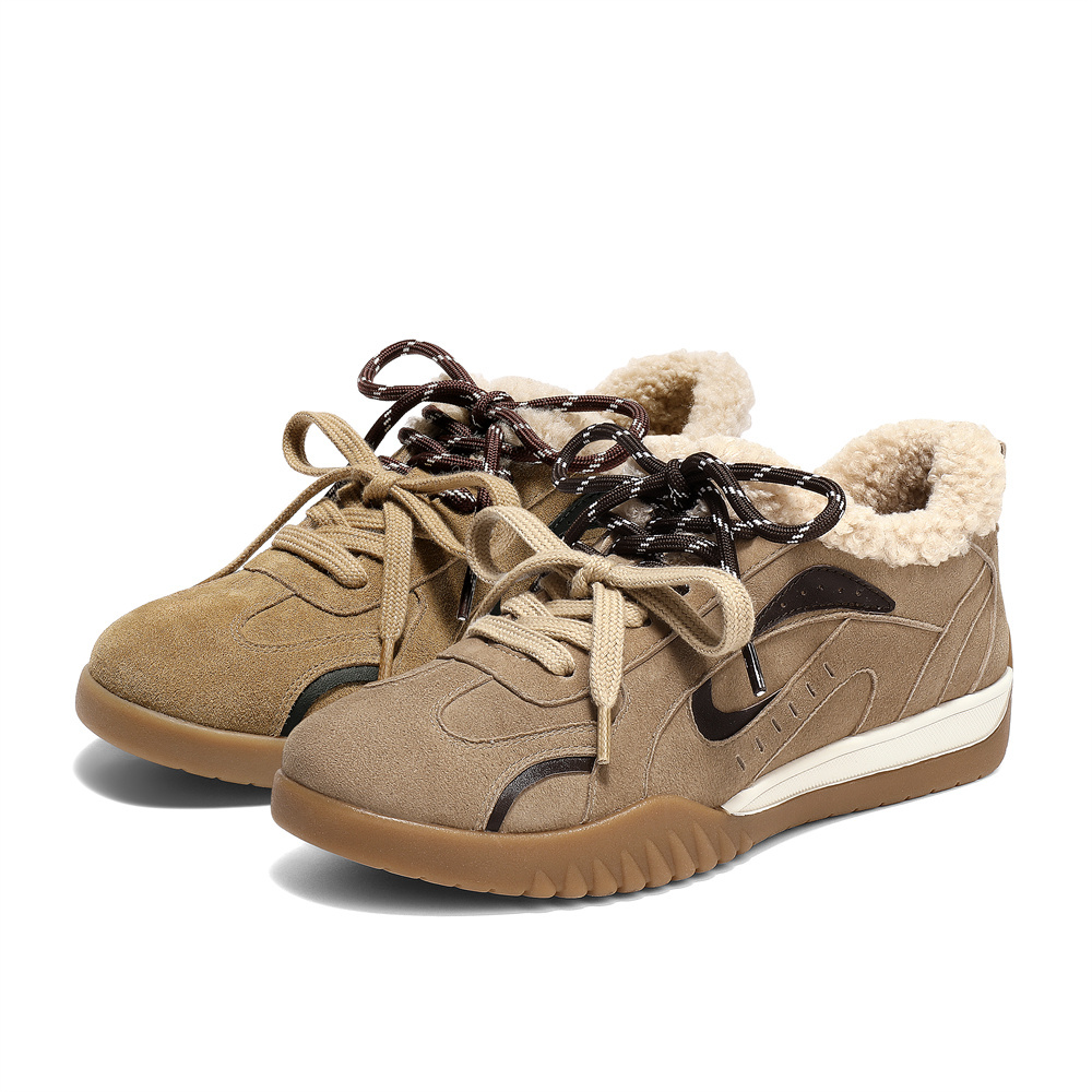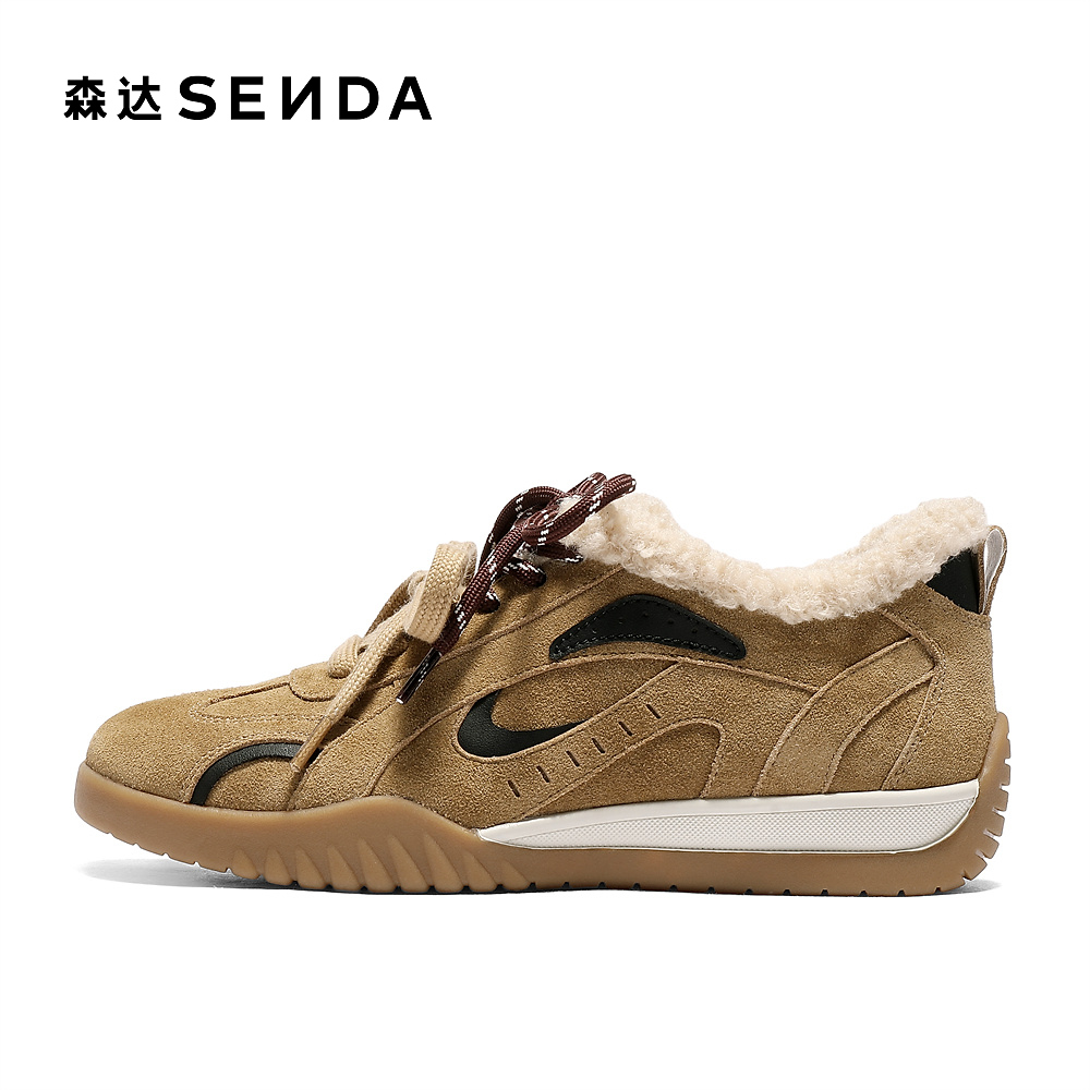 森达月牙真皮毛毛鞋女2025冬新毛绒保暖户外休闲德训鞋4NRB8DM5