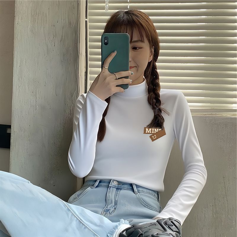 德绒打底衫白色女款秋冬半高领长袖t恤中长款洋气百搭保暖ins上衣