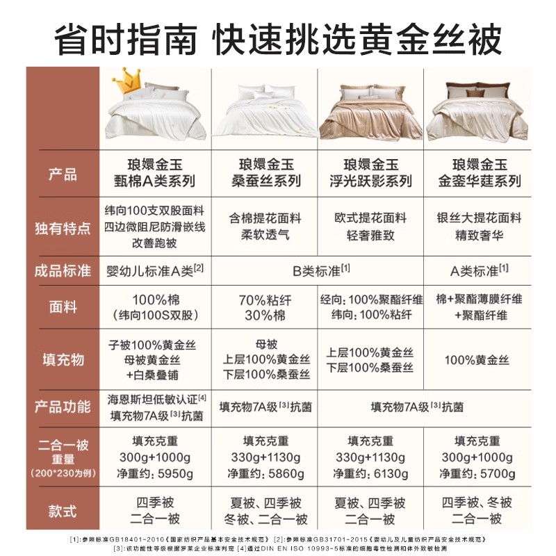 罗莱家纺100%桑蚕丝被芯长丝黄金蚕丝被结婚陪嫁喜被二合一被四季
