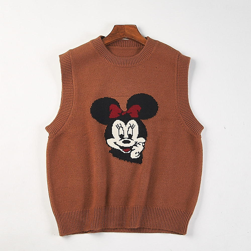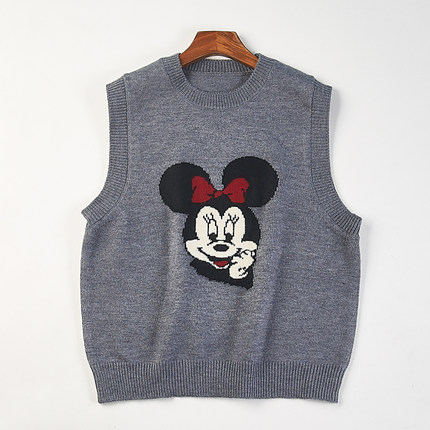 精品韩版卡通提花针织衫背心H85337秋冬少女圆领套头无袖毛衣马甲