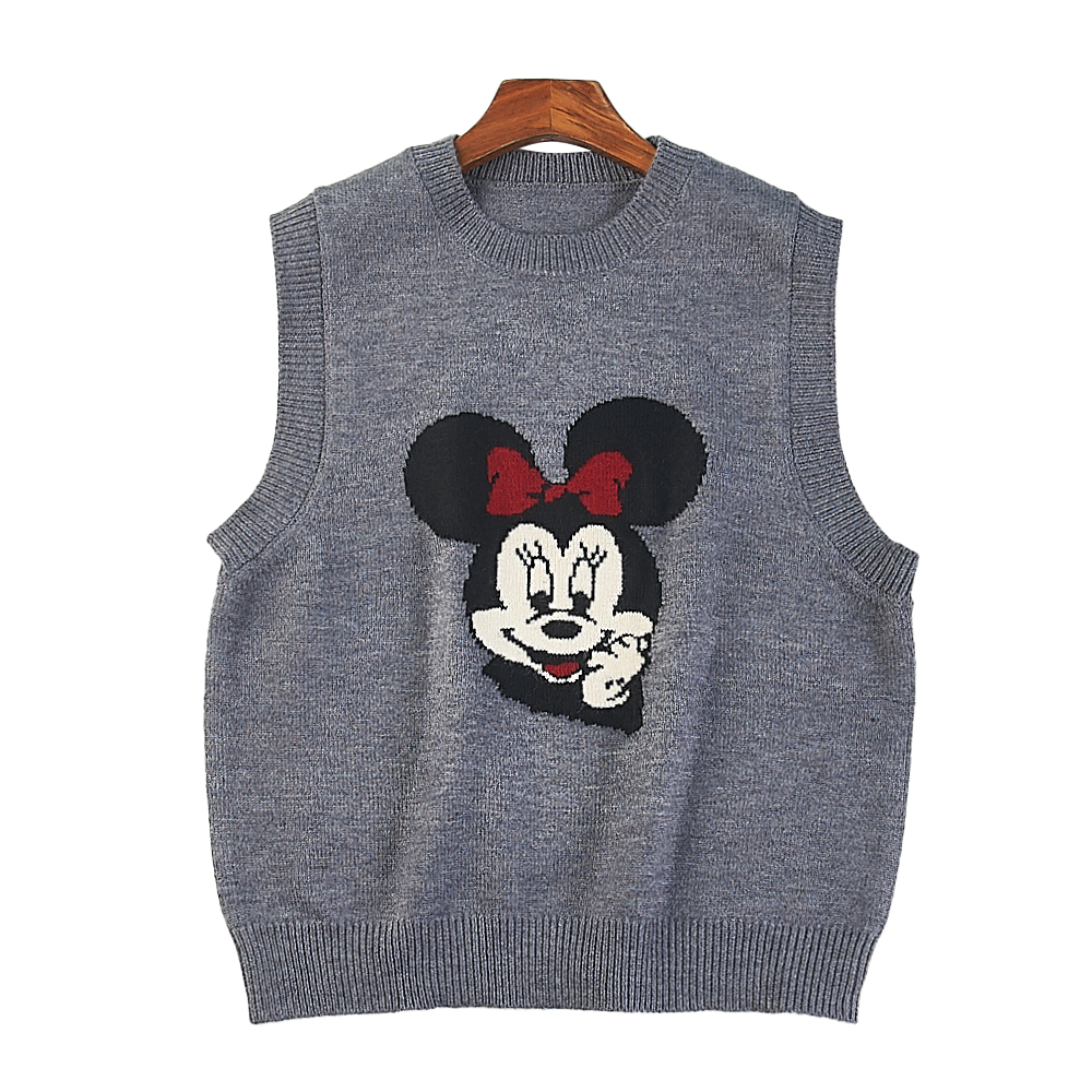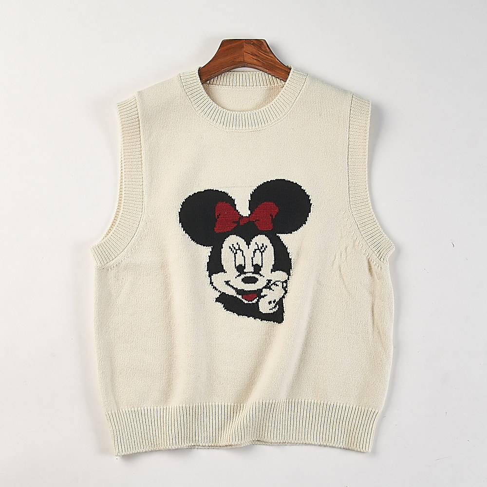 外贸韩版卡通提花针织背心女