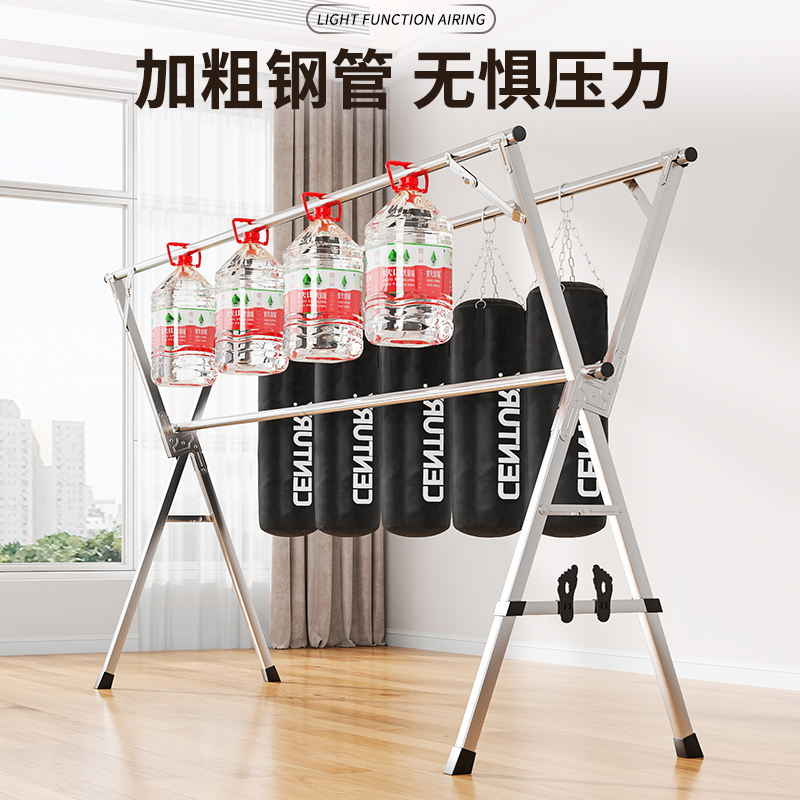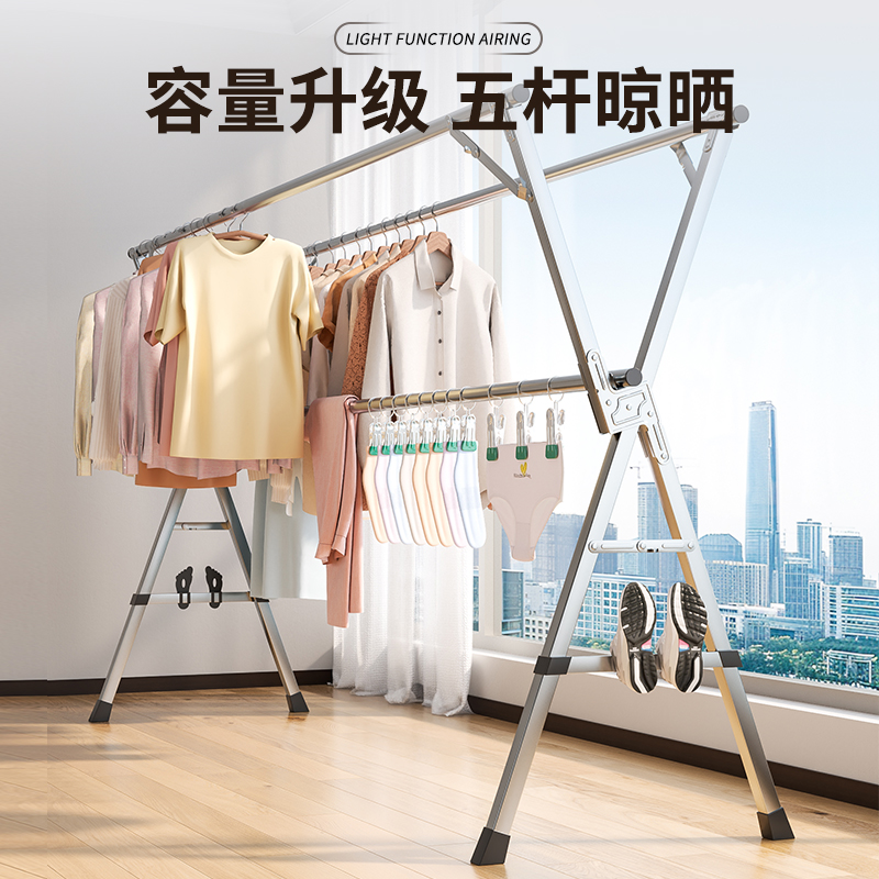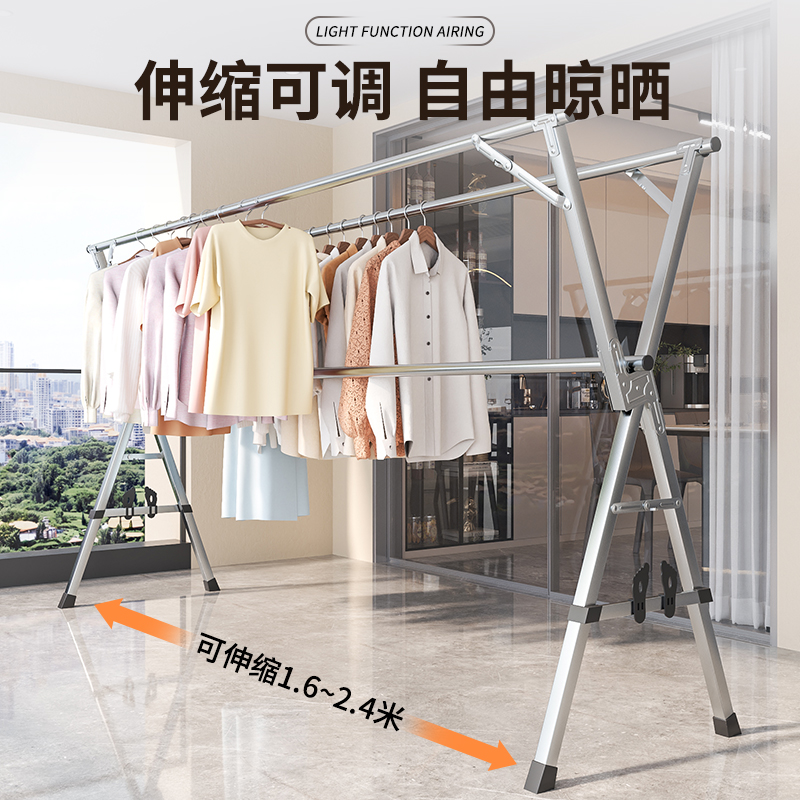折叠晾衣架落地室内家用阳台卧室加厚钢室外凉伸缩杆式晒被子神器