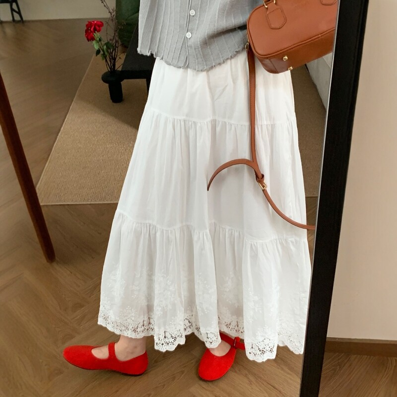 此外韩系甜美温柔风A字长裙女2026春夏新款蕾丝钩花半身裙气质款