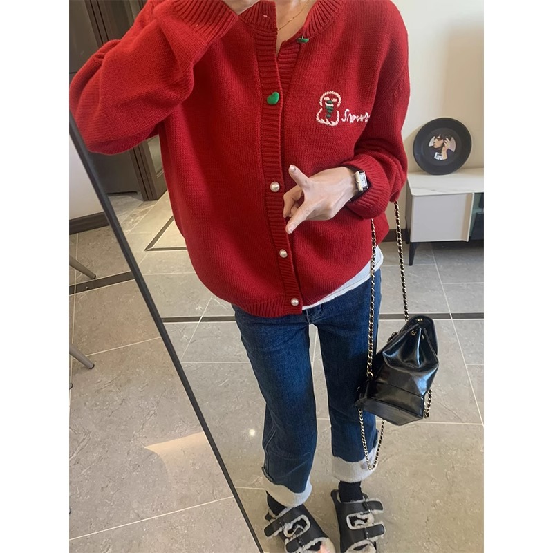 圣诞过年红色毛衣女春季2025新款高级感超好看本命年针织开衫外套