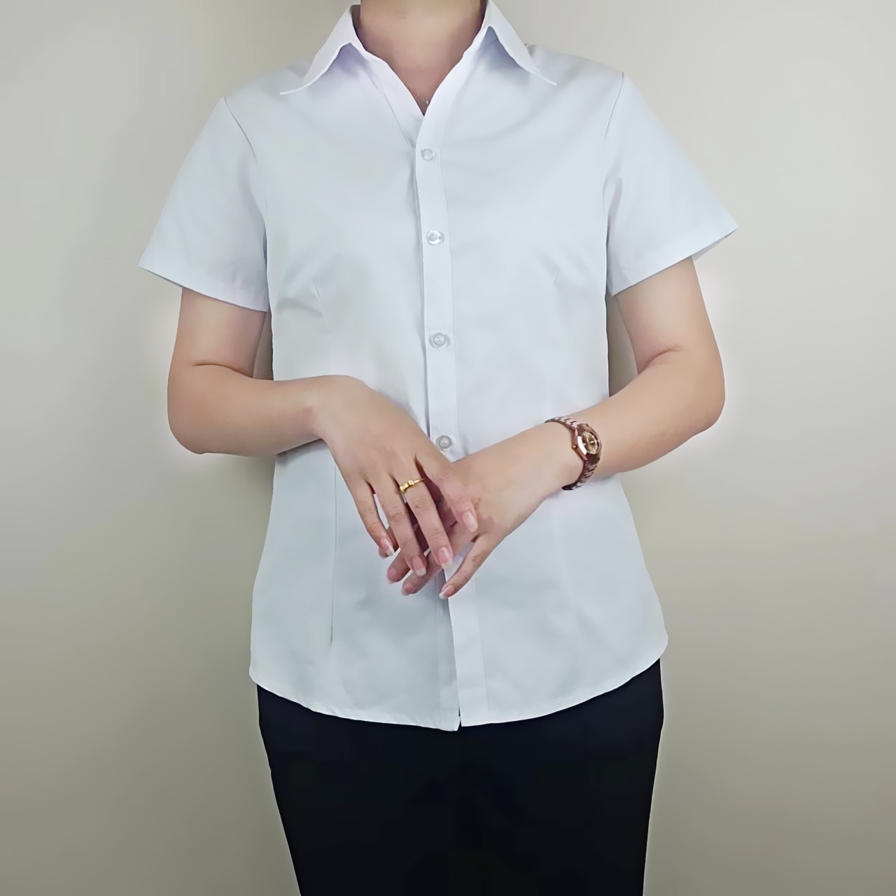 女纯白色职业装衬衫竖条纹面试长短袖大码修身显瘦尖领气质棉工衣