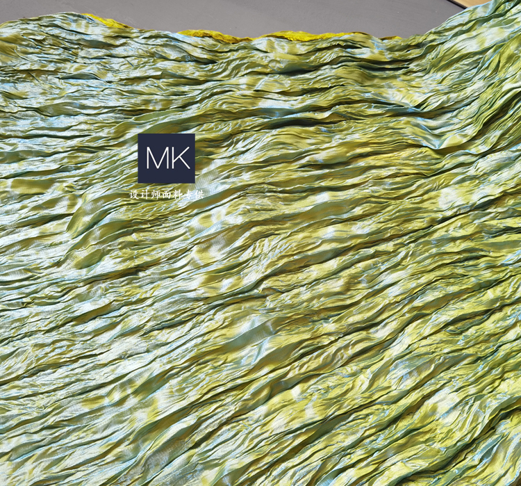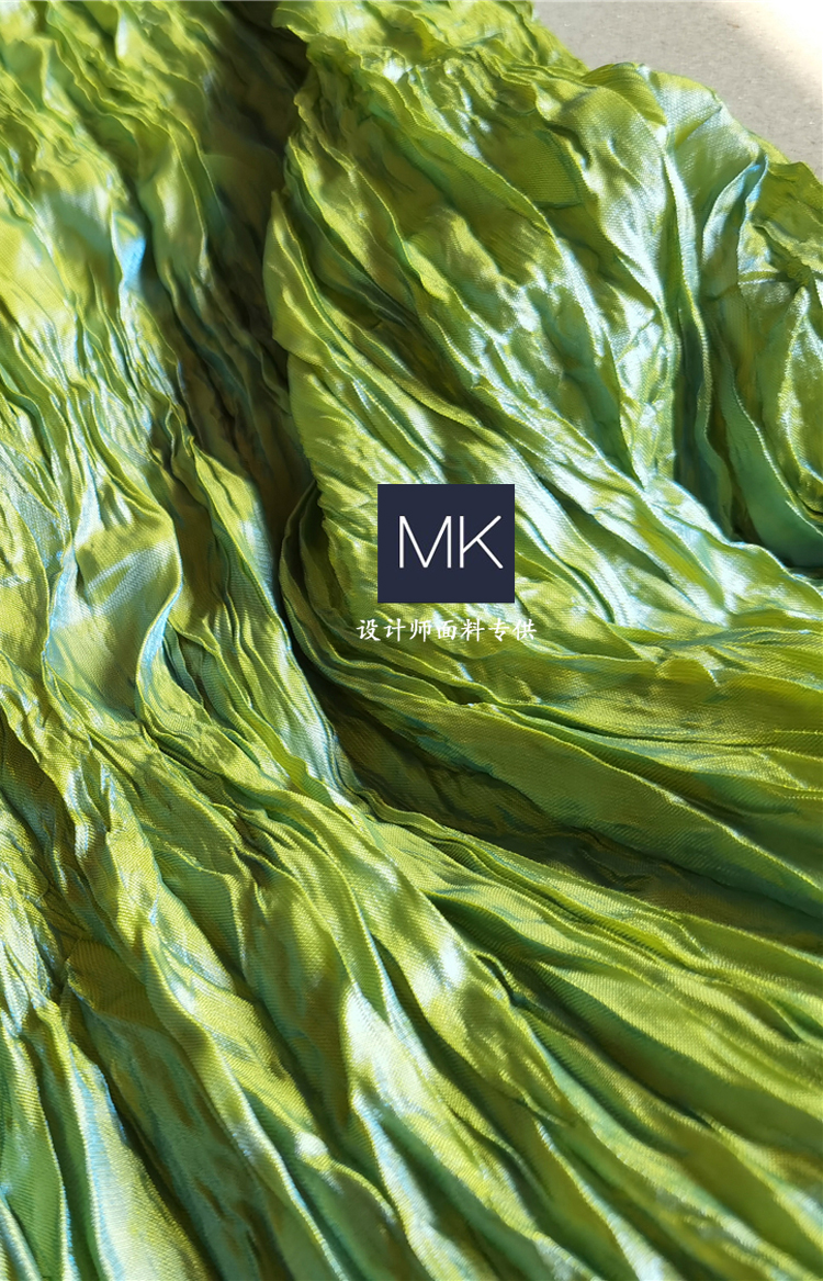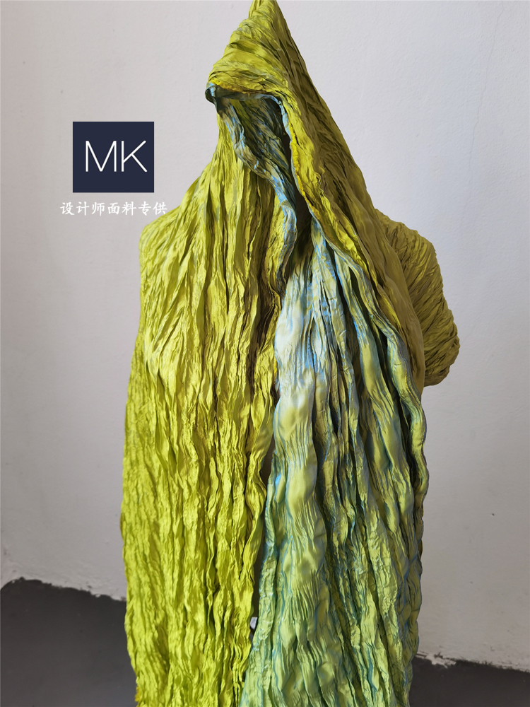 渐变双色蓝绿织扭乱双纽压褶褶皱三宅一生复古再造毕业设计师布料