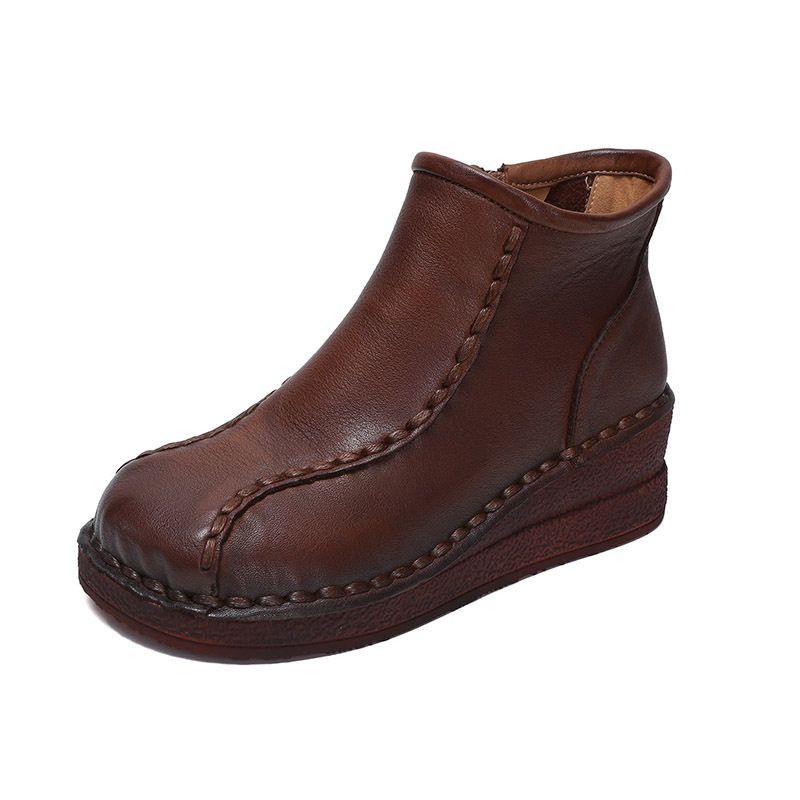 厚底以一软底短靴秋冬复古坡跟加
