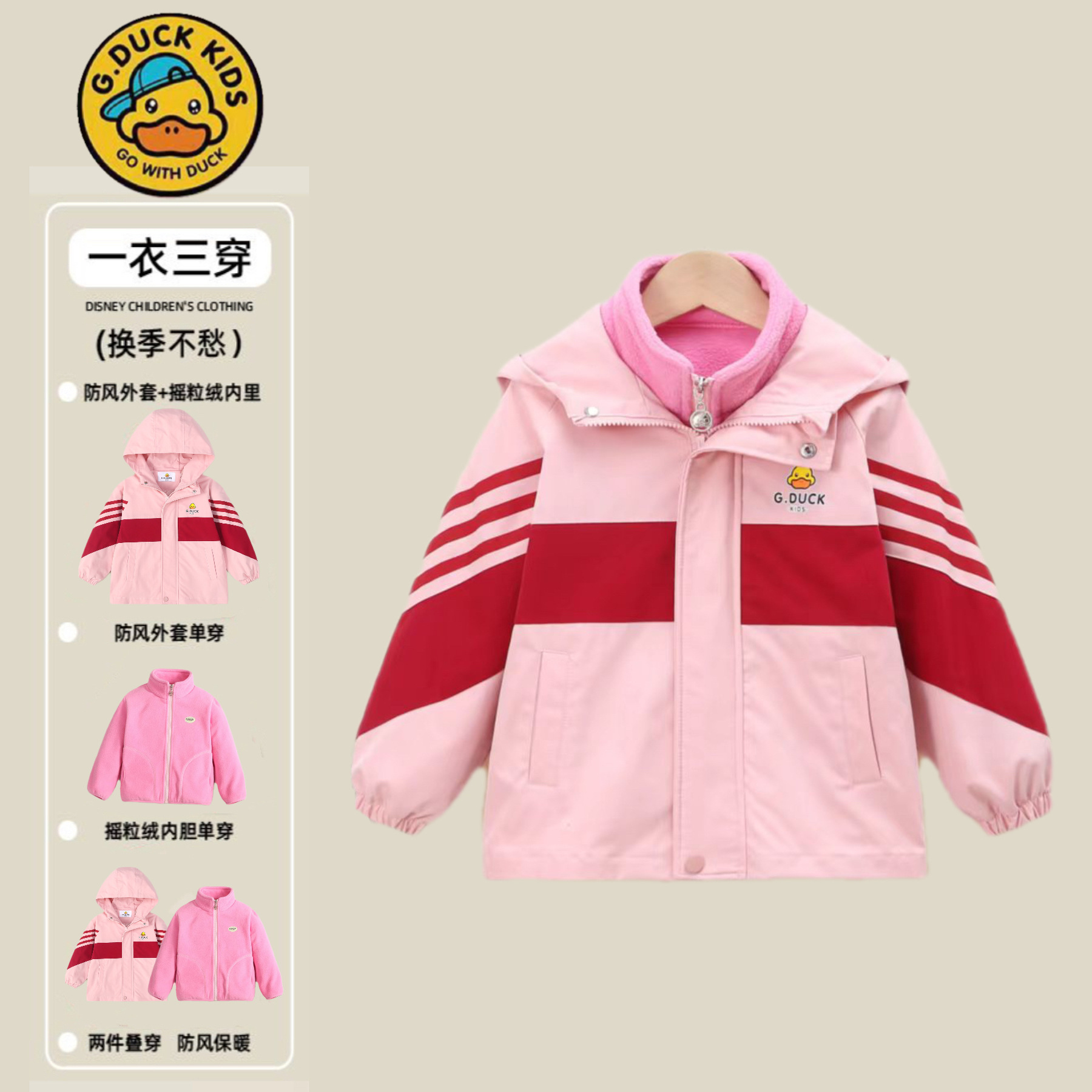 正品小黄鸭儿童冲锋衣男女同款三合一防水防风外套春秋冬季新款