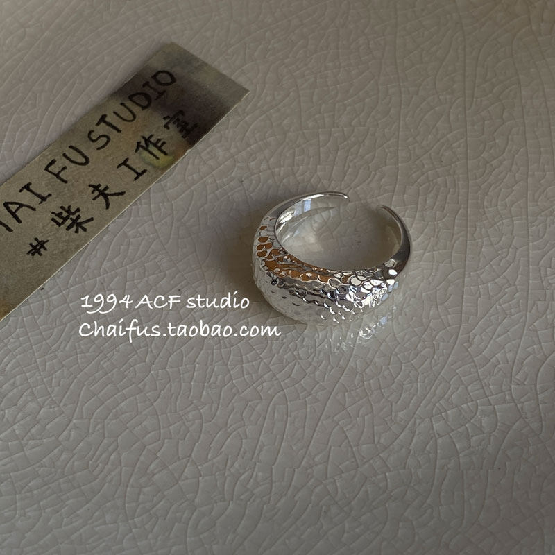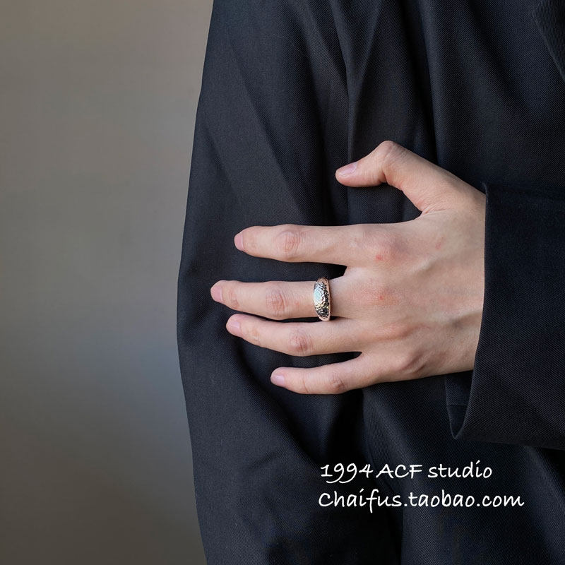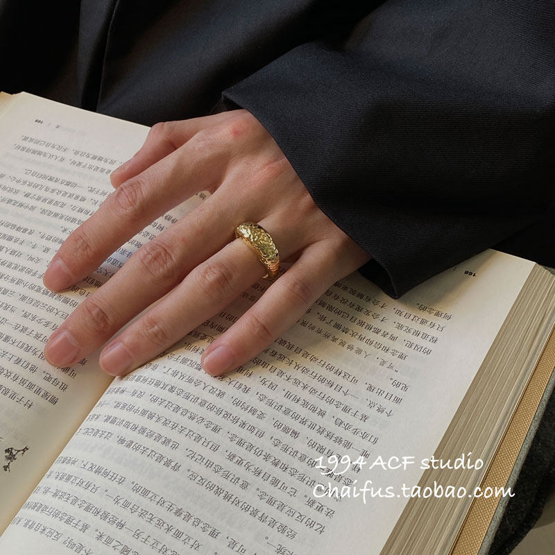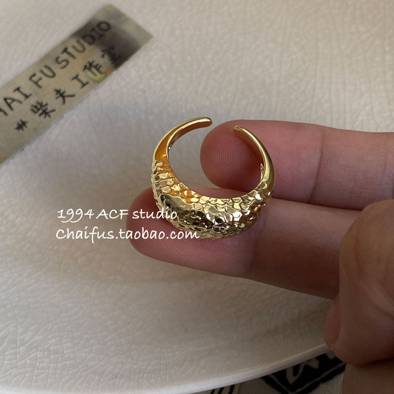 柴夫工作室/J240 复古中性风陨石纹理开口戒指大气亮金日常食指戒