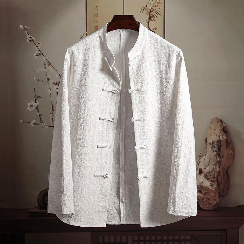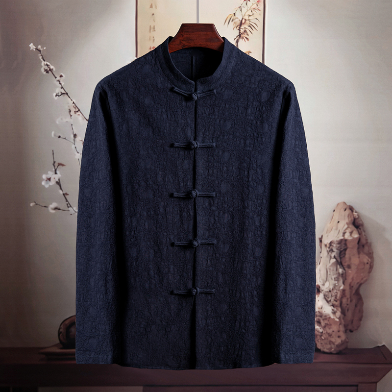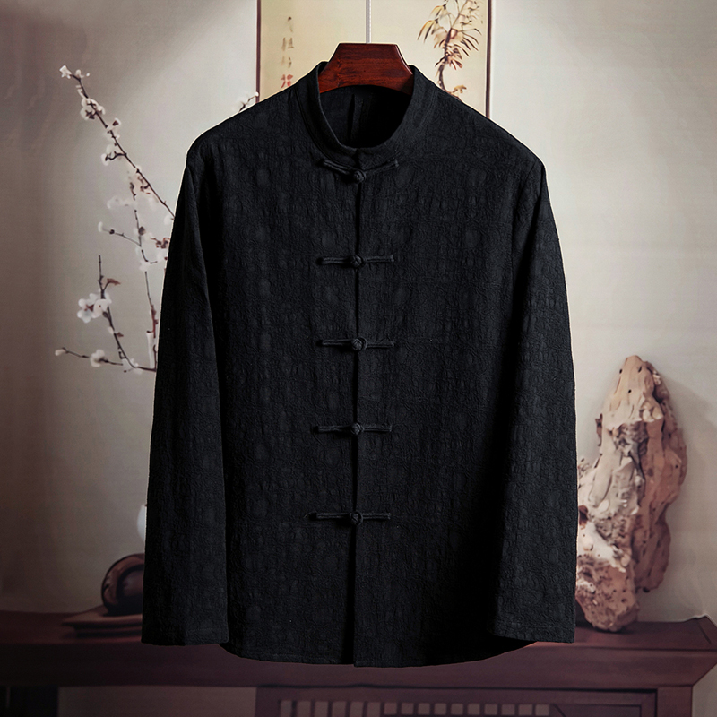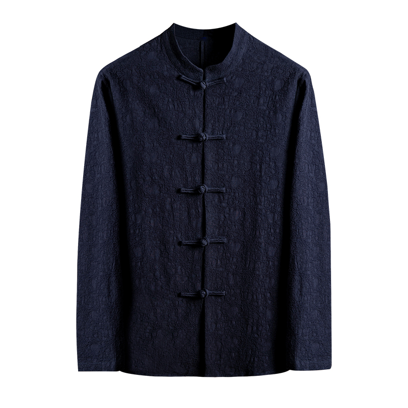由天丨棉麻提花中老年唐装男立领盘扣外套薄款中国风男装改良汉服