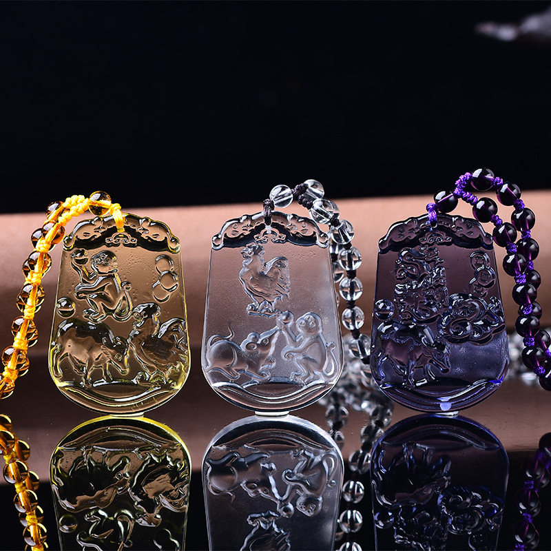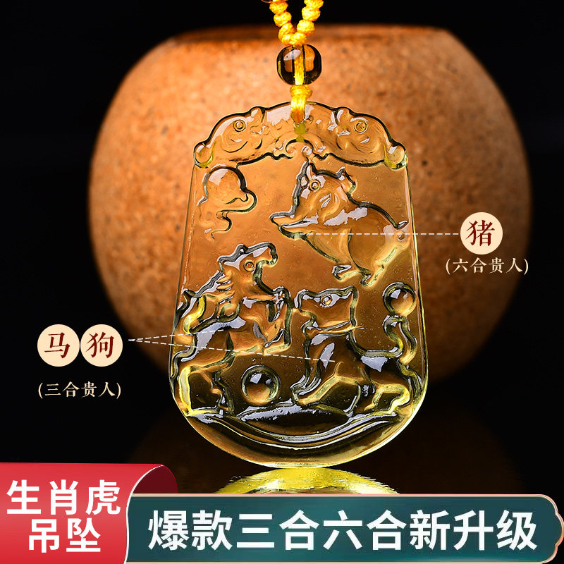 爆款白水晶工艺品项链三合六合贵人局生肖虎吊坠本命年护身挂件吉