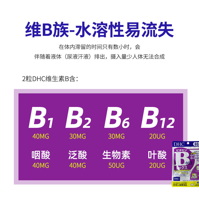 日本DHC控油痘祛维生素B族维他命B维B 增免疫抵抗力VB 60日120粒