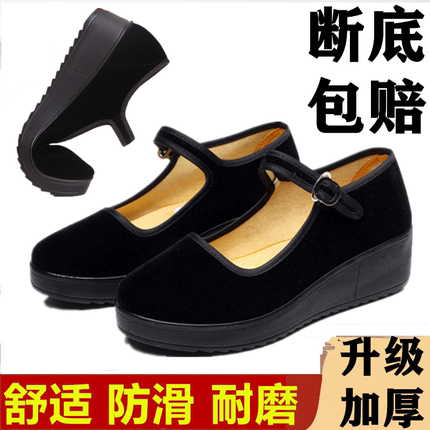 工作鞋女黑酒店上班鞋平底跳舞妈妈鞋防滑老北京布鞋女鞋单鞋透气