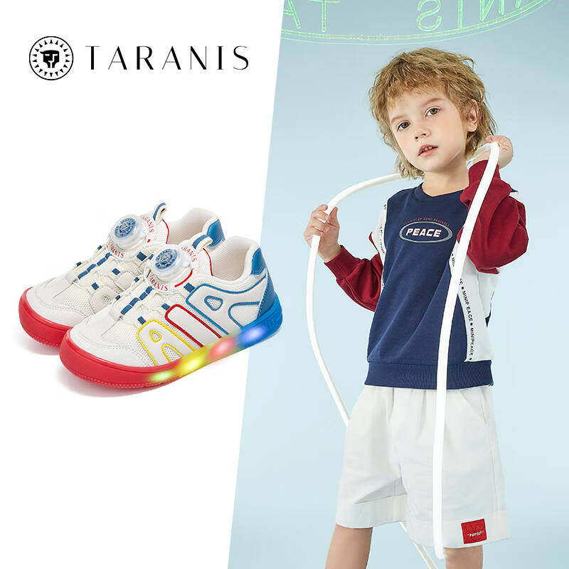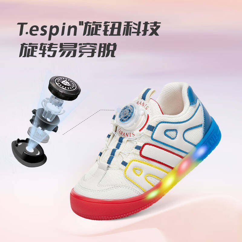泰兰尼斯童鞋儿童闪灯鞋春秋新款旋钮扣女童亮灯运动鞋男童发光鞋