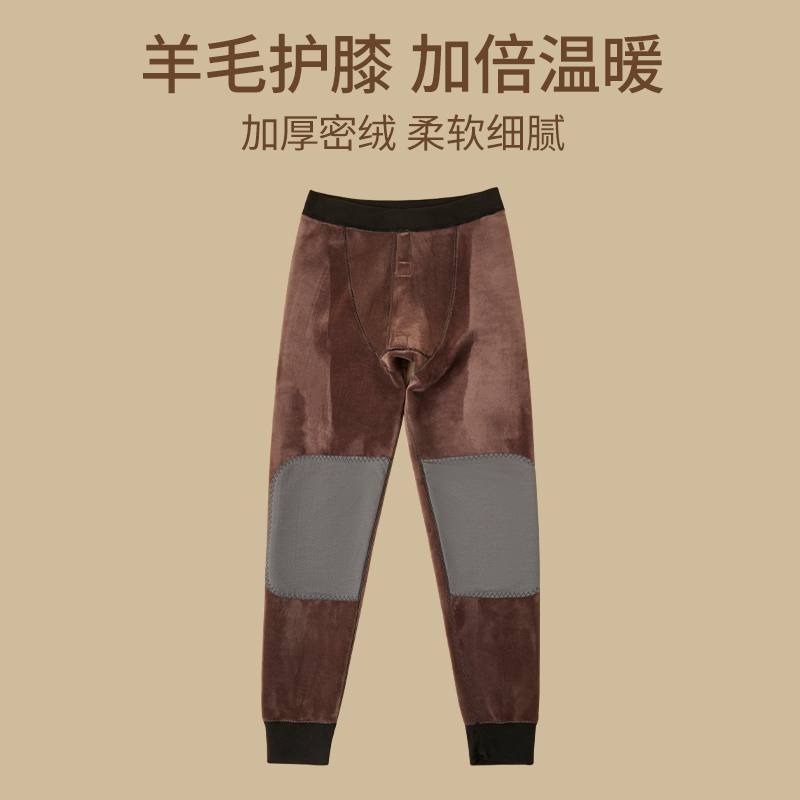 猫人男士保暖裤加绒加厚含羊毛双层护膝打底棉毛裤秋裤冬季绒裤男