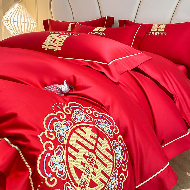 中式婚庆四件g组大红色喜庆结婚被套床单婚房喜被陪嫁床上用品