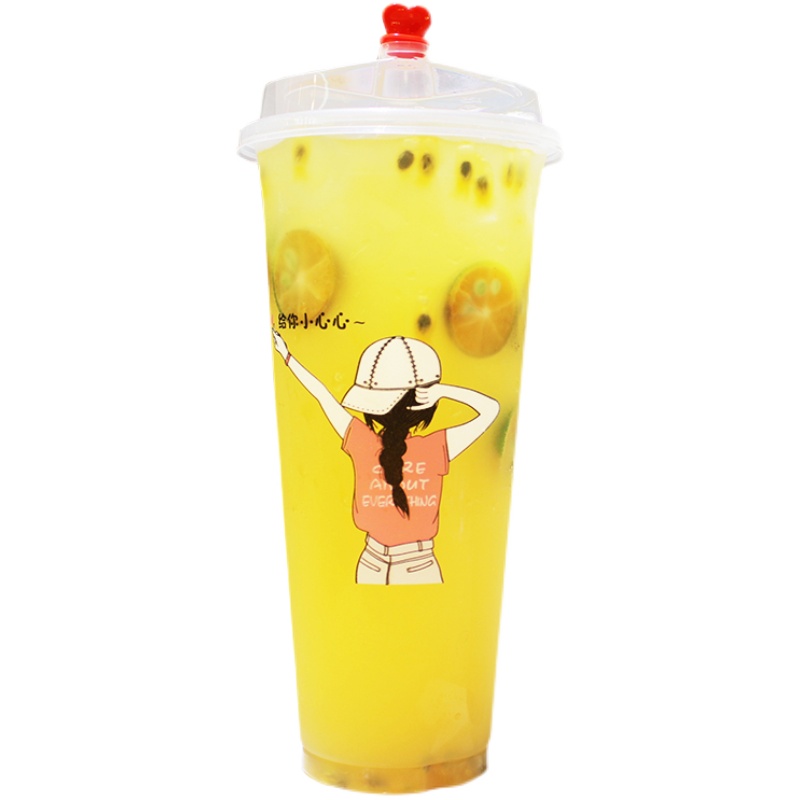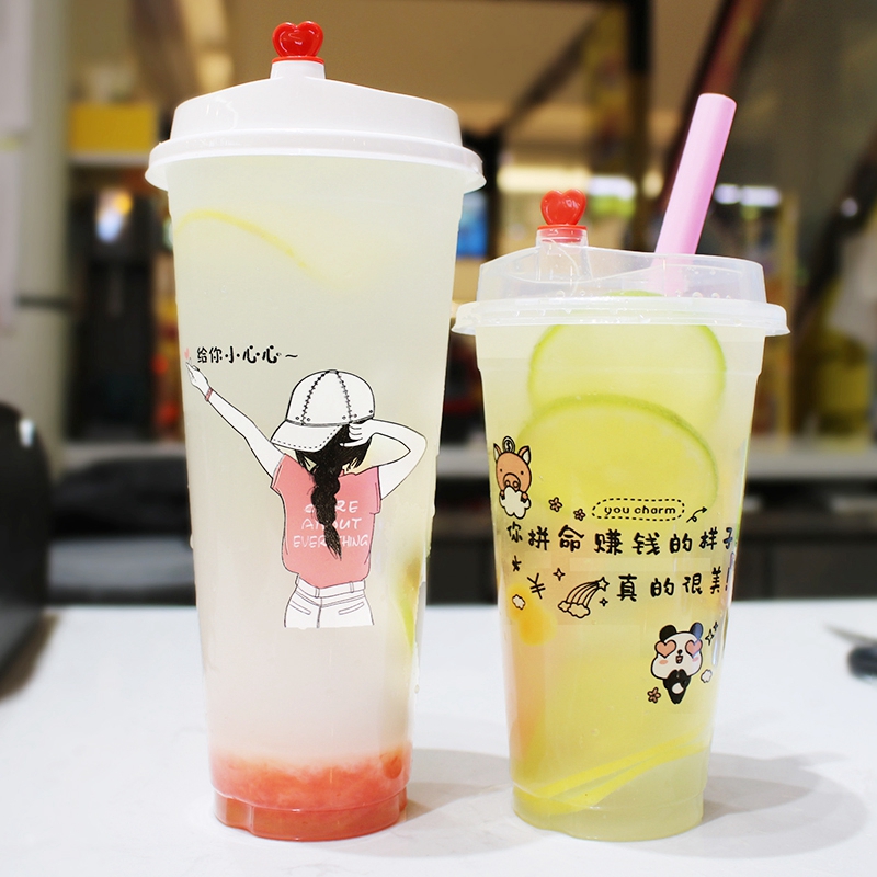 奶茶杯一次性带盖商用90口径透明塑料果汁豆浆杯子奶茶店专用定制
