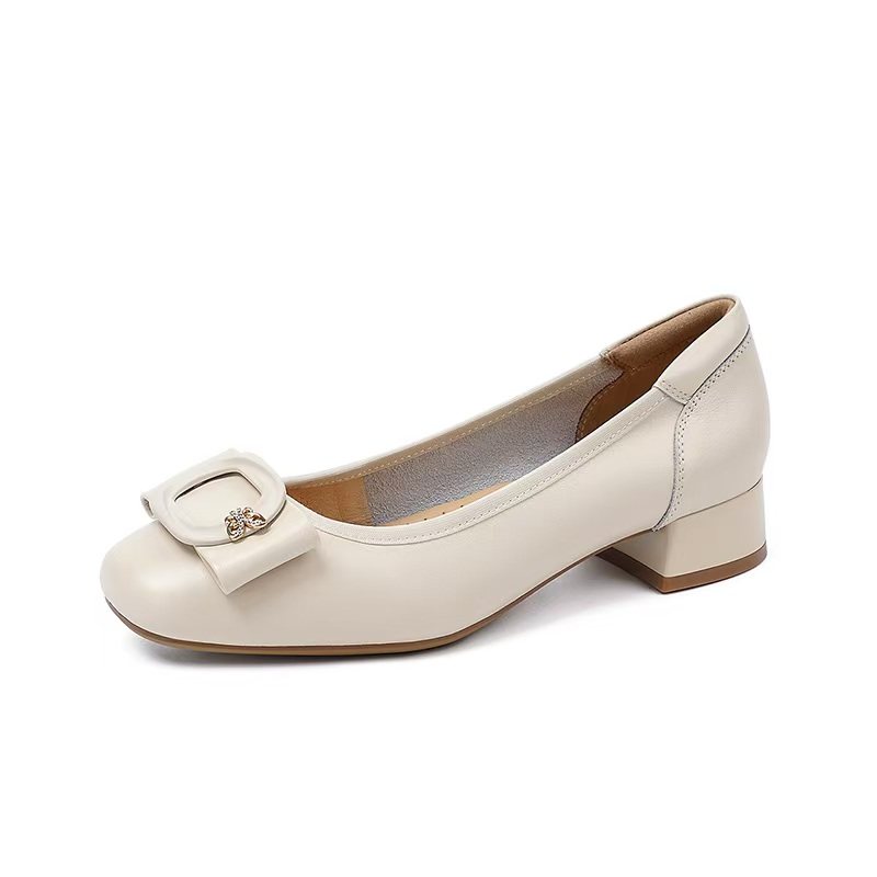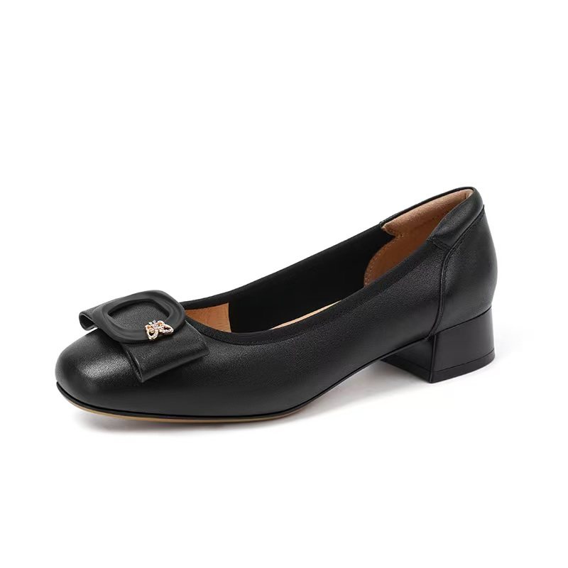 HS257910哈森2025新款春季粗跟中跟圆头蝴蝶结时尚优雅浅口女单鞋