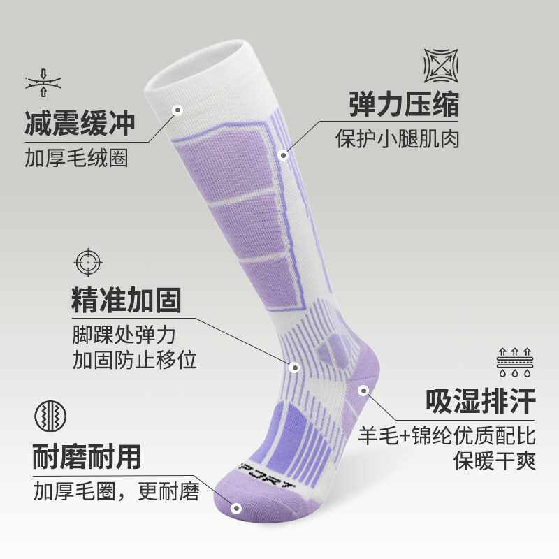 SkyPilot美利奴羊毛滑雪袜女款冬季保暖加厚徒步长筒专业运动男袜