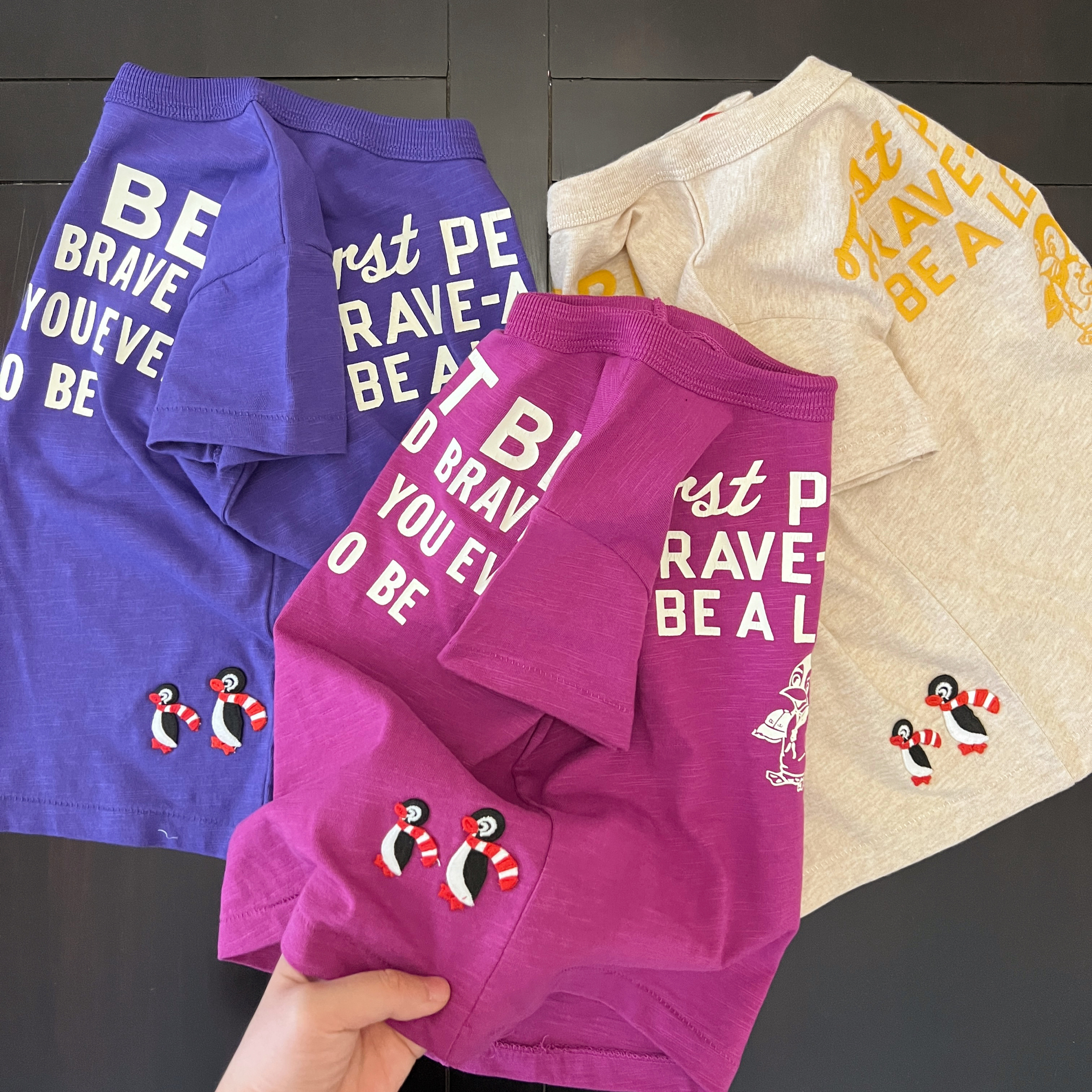 日系儿童T恤短袖竹节棉上衣企鹅