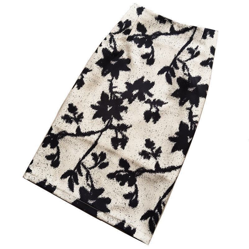 印花半身裙女夏季高腰修身显瘦后开叉一步裙时尚花色包臀裙中裙