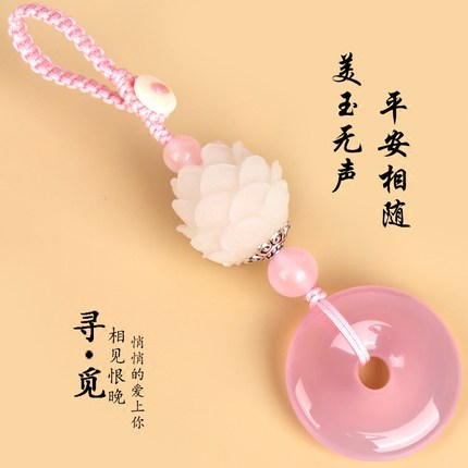 玛瑙玉髓平安扣汽车钥匙挂件菩提莲花钥匙扣男女创意钥匙链包挂饰