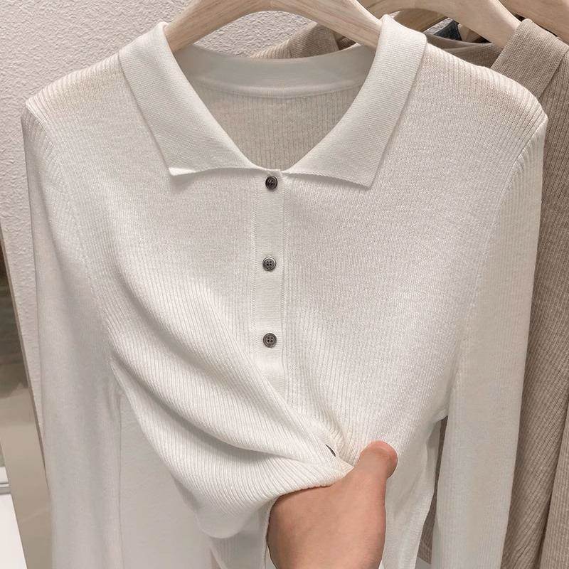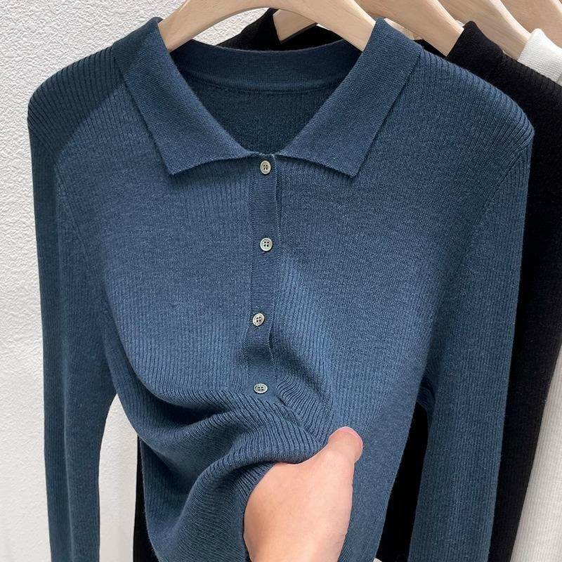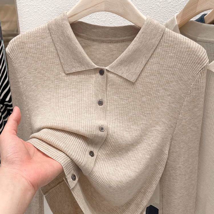 秋季新款polo领针织开衫毛衣女气质通勤修身洋气上衣薄款外套