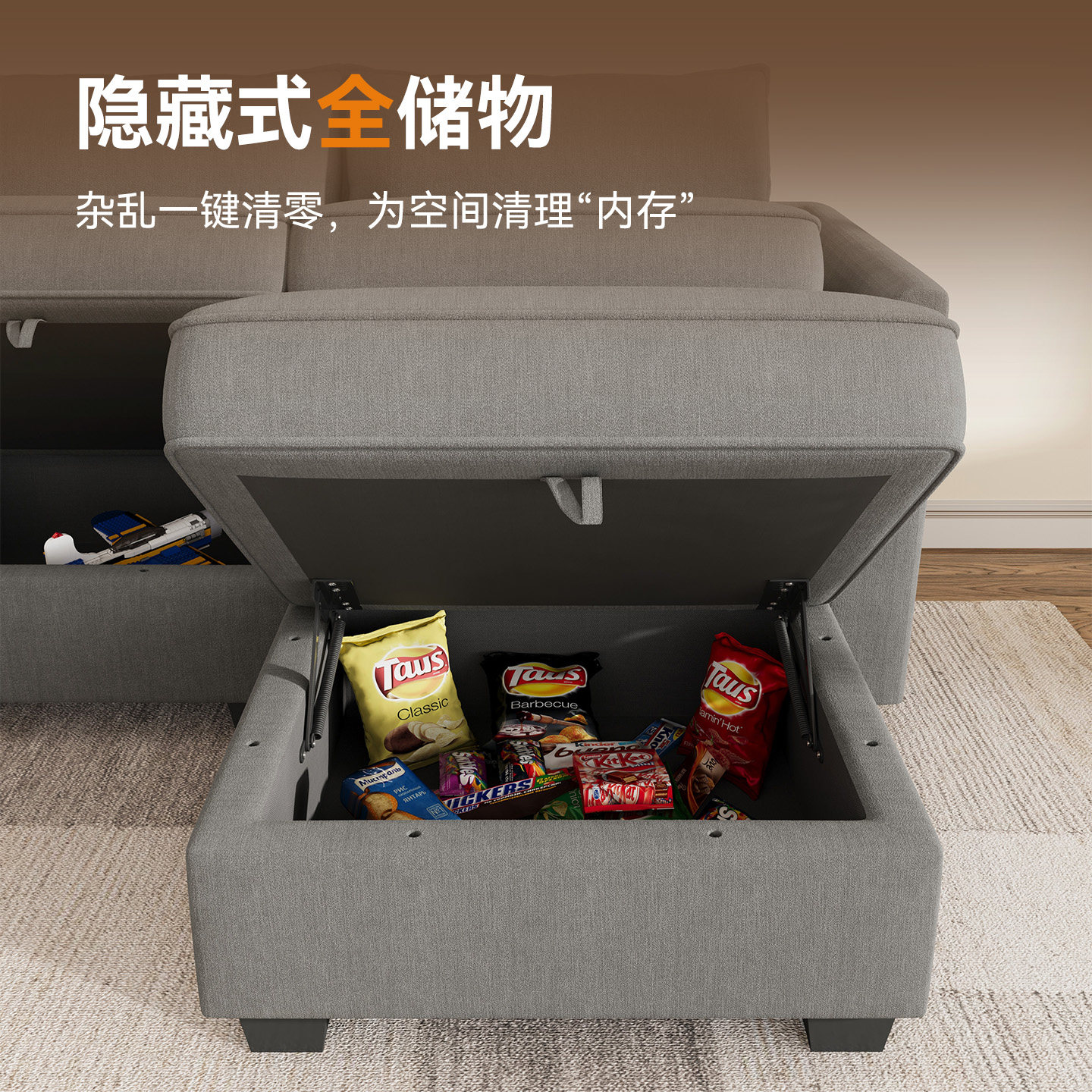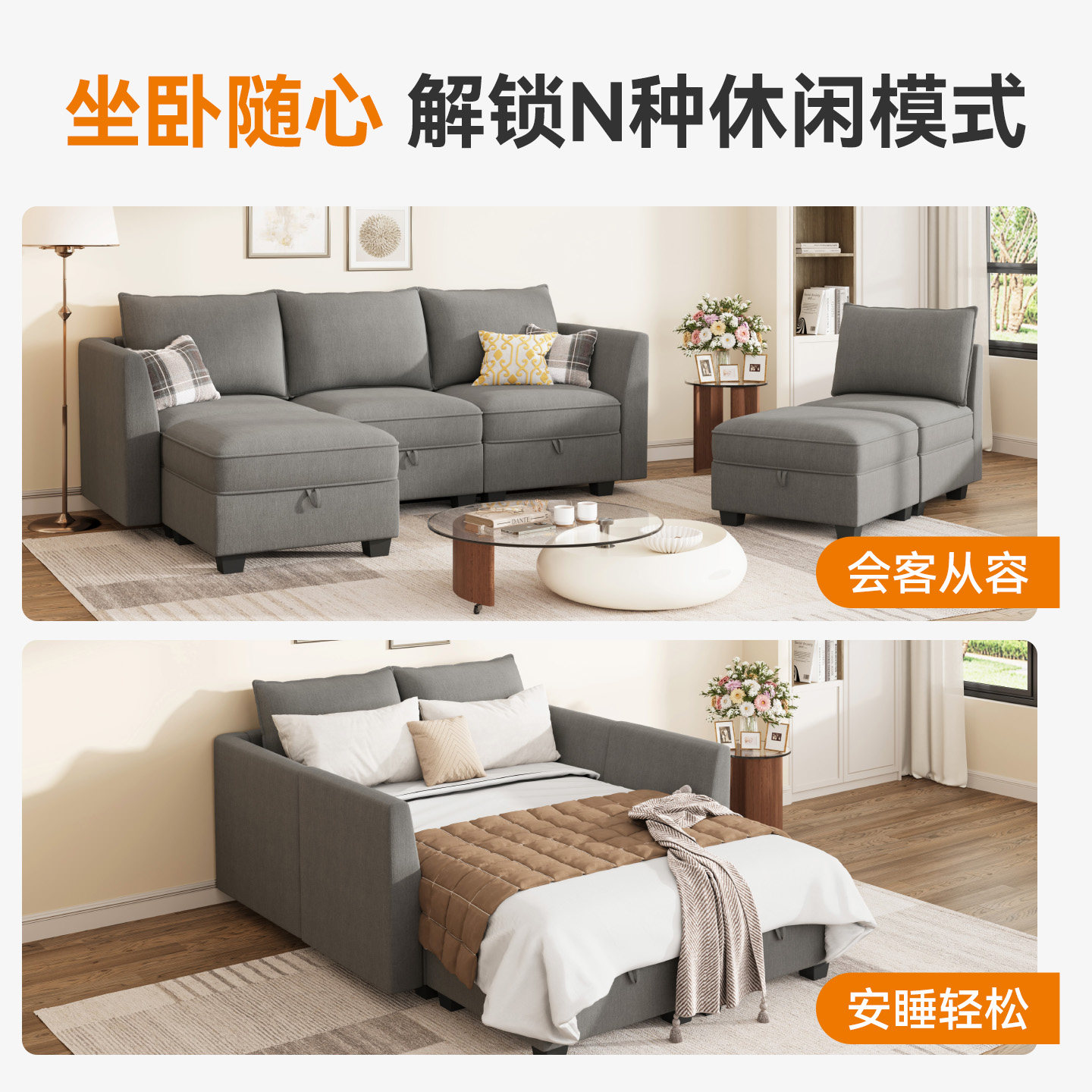 诺岚布艺储物沙发小户型客厅组合模块多功能转角两用带贵妃沙发床