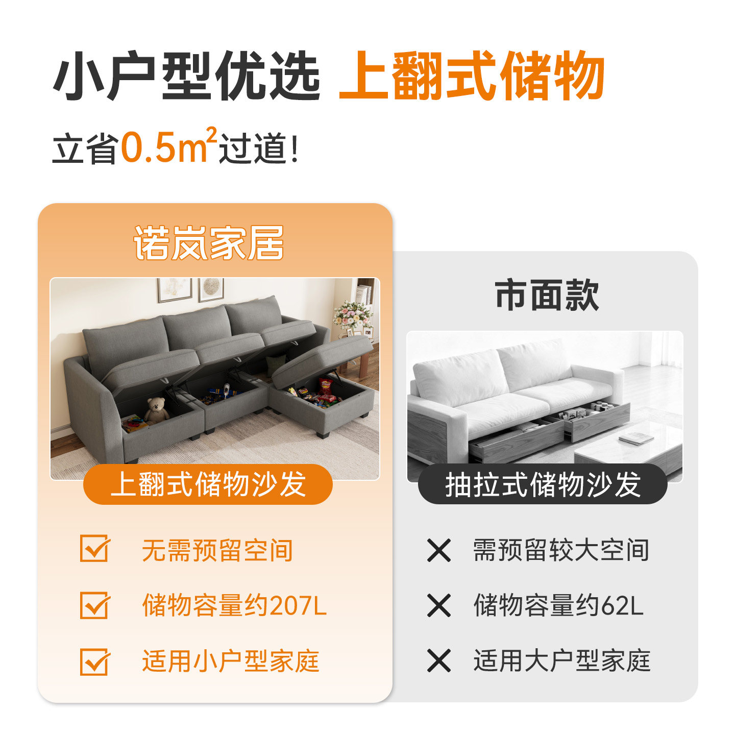诺岚布艺储物沙发小户型客厅组合