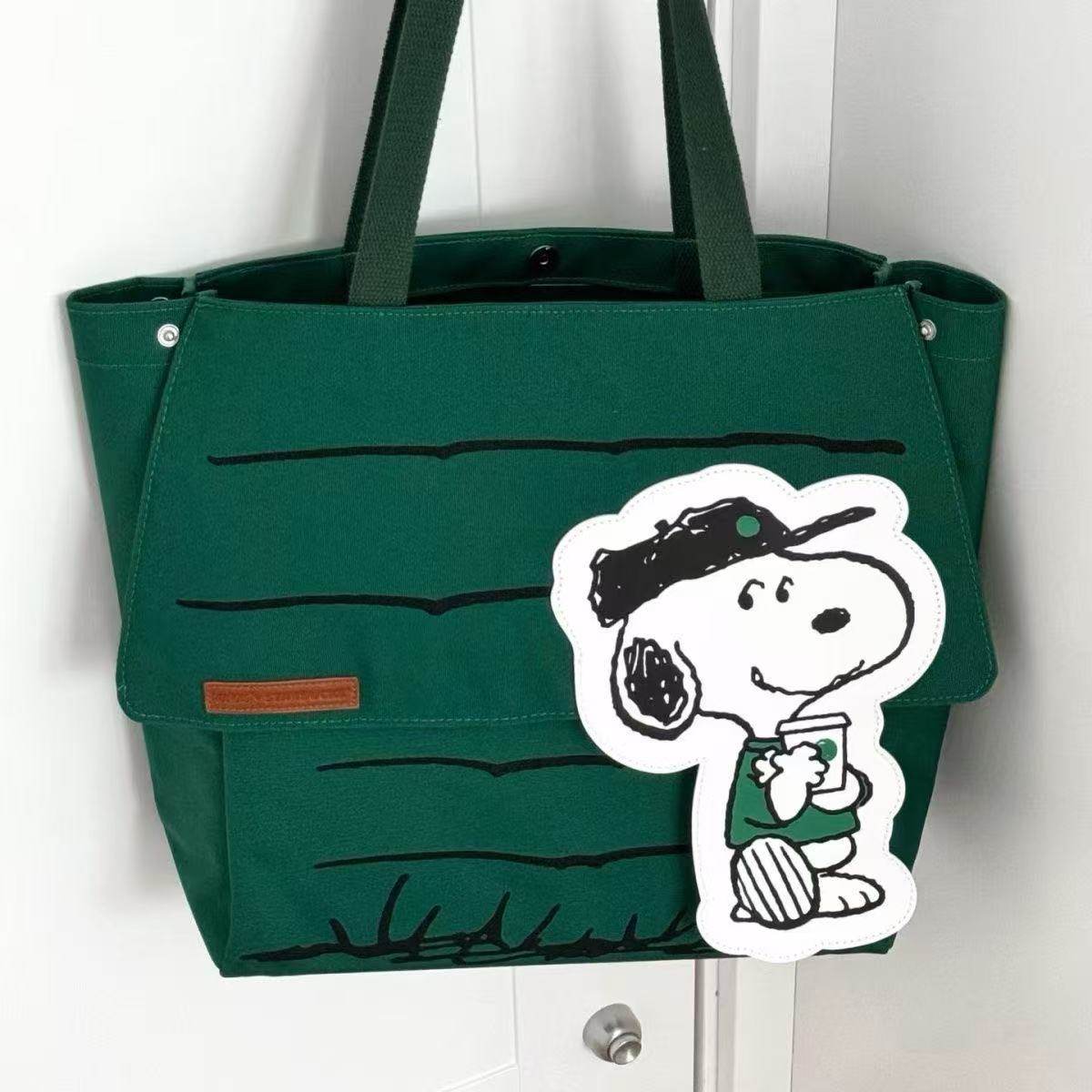 日系星巴克联名史努比新品托特帆布包大容量肩包学生通勤妈咪包