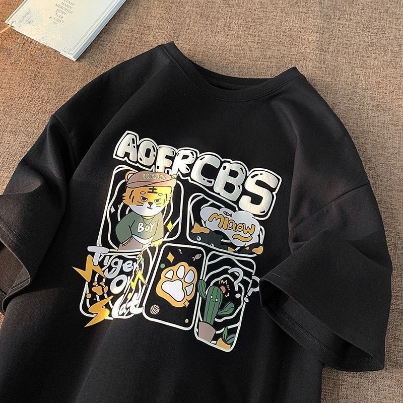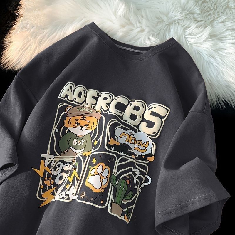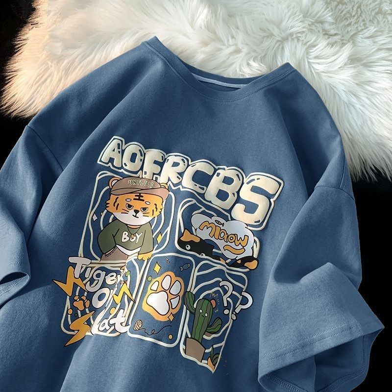 港风短袖T恤2024男夏季卡通印花半袖ins潮流情侣体恤宽松上衣男12